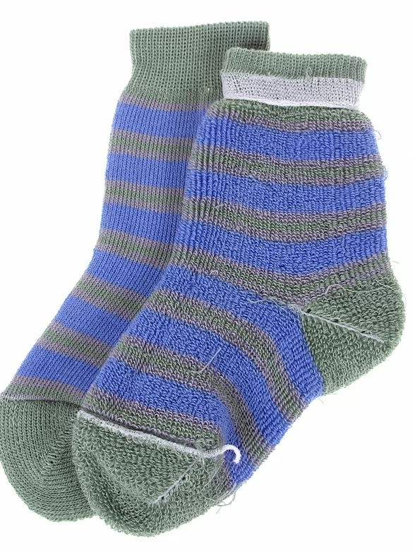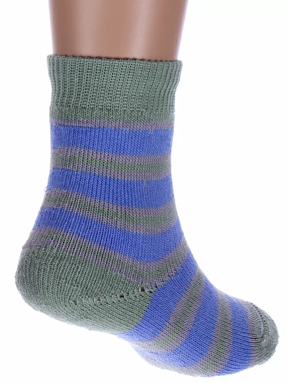 Межсезонные или зимние укороченные детские носки, цвет зеленый-голубой, теплые, повседневные, махровые, возможно бесшовные, принт (рисунок): полоски, с узором, состав: 98% хлопок, 1.5% эластан, 0.5% полиамид, арт. С114. Производитель «ООО Альтаир, г. Орск, Оренбургская обл, Россия» под брендом «Альтаир».