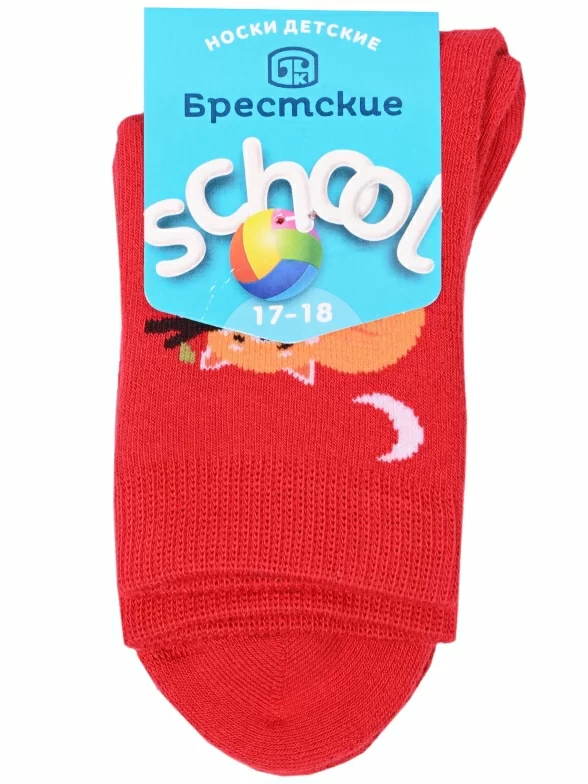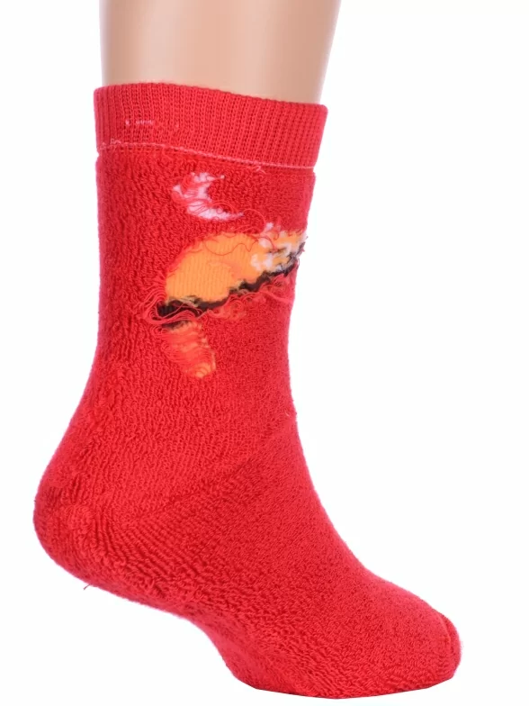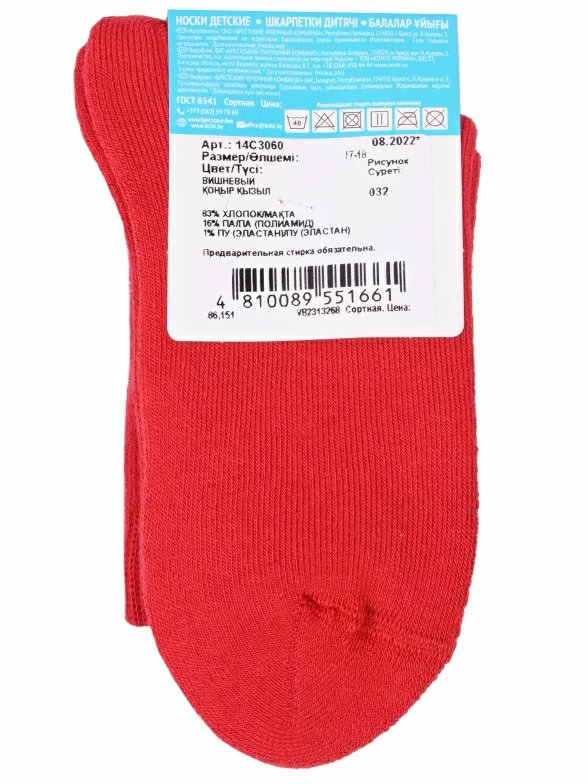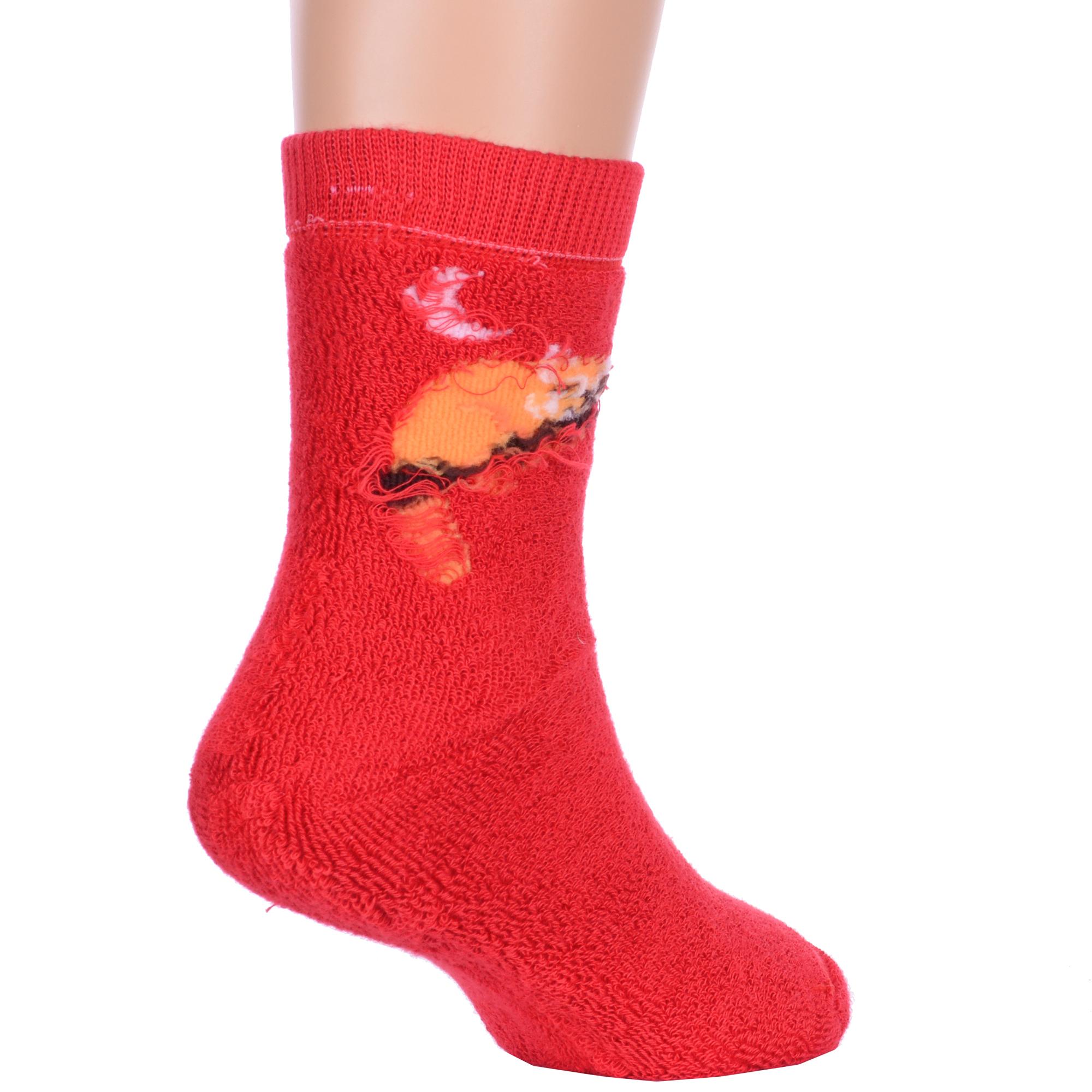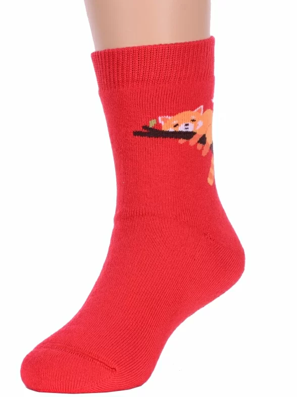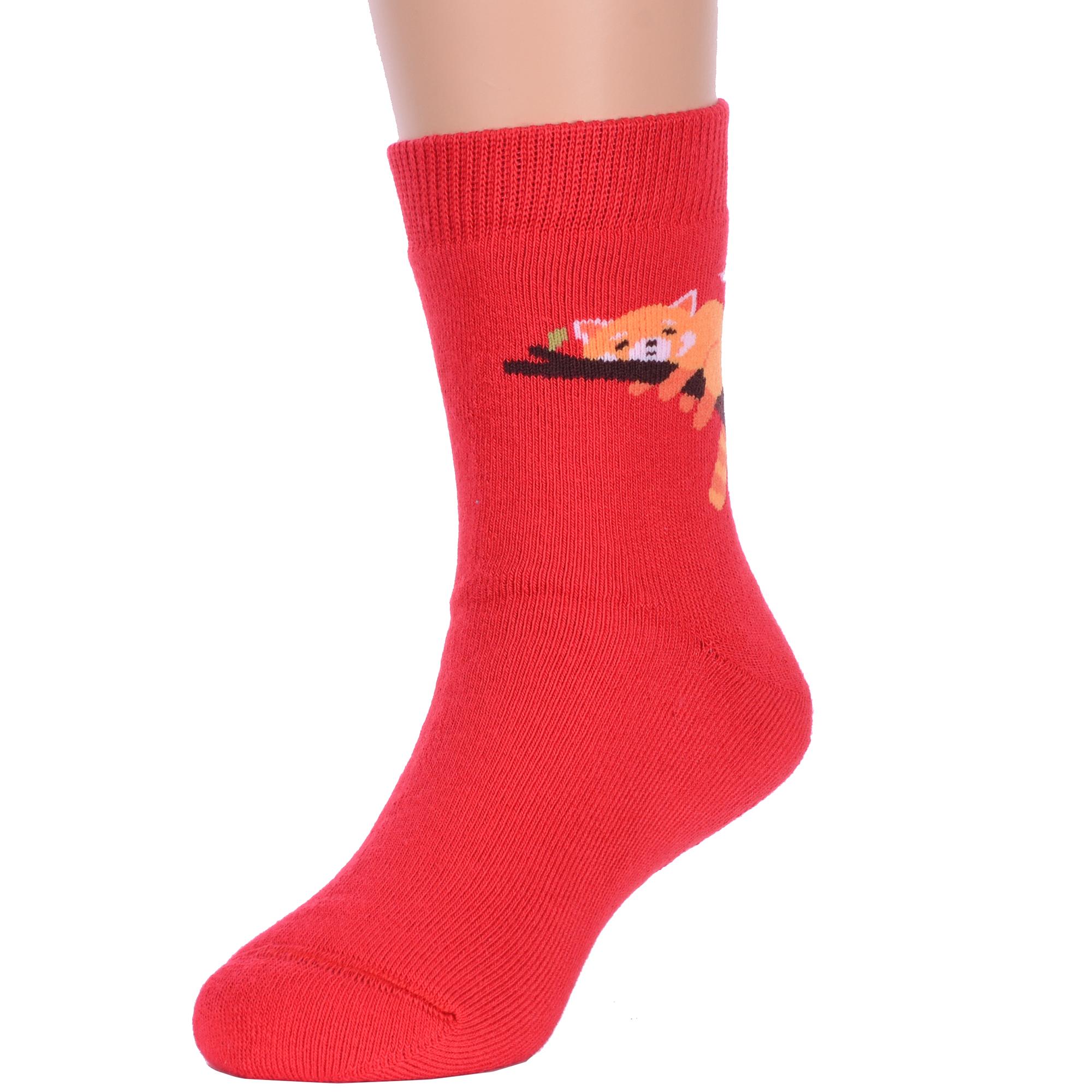Межсезонные или зимние укороченные детские носки, цвет красный, теплые, повседневные, махровые, шов кеттельный (бесшовная технология), принт (рисунок): животные, с узором, состав: 83% хлопок, 16% полиамид, 1% эластан, арт. 14С3060. Производитель «Брестский чулочный комбинат ОАО, Беларусь» под брендом «Брестские (бчк)».
