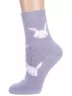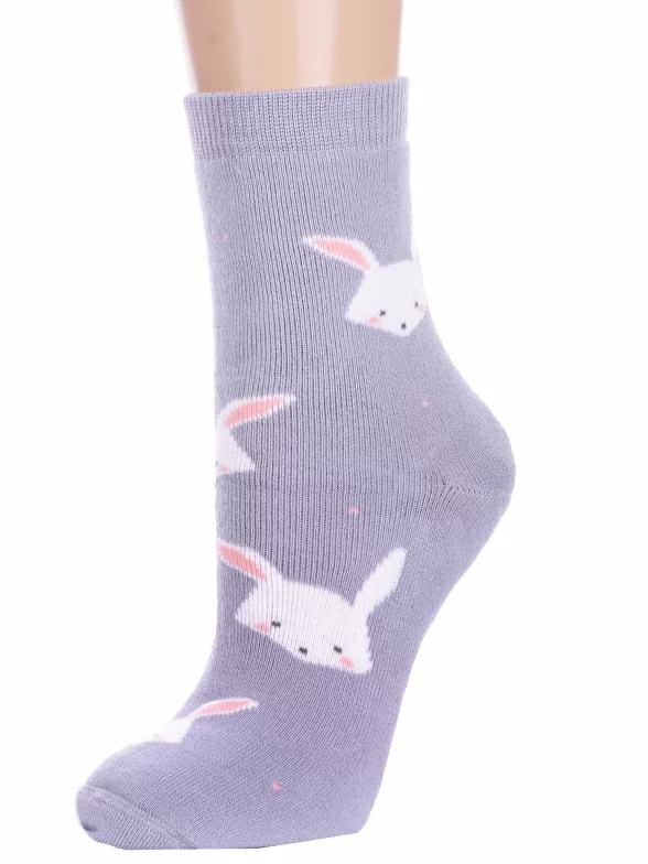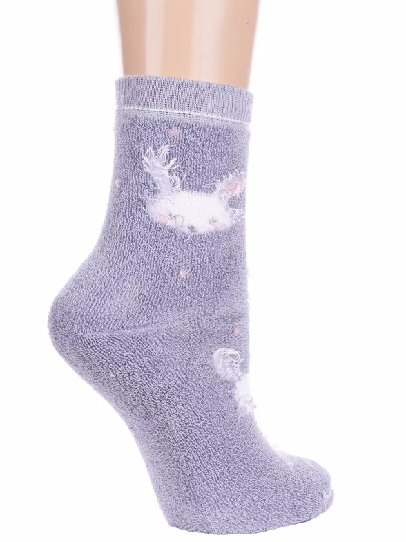 Межсезонные или зимние укороченные детские носки, цвет сиреневый, теплые, повседневные, махровые, шов кеттельный (бесшовная технология), принт (рисунок): животные, с узором, состав: 83% хлопок, 16% полиамид, 1% эластан, арт. 14С3060. Производитель «Брестский чулочный комбинат ОАО, Беларусь» под брендом «Брестские (бчк)».