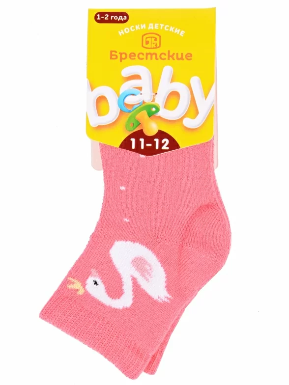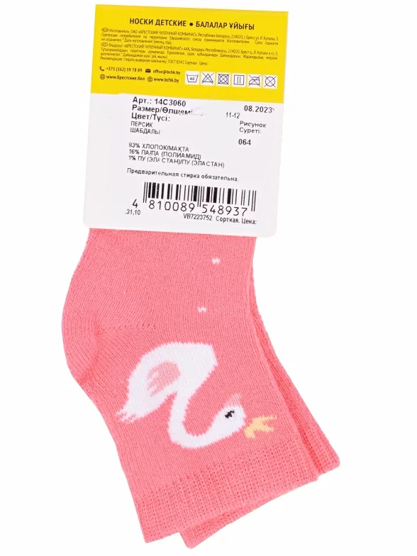 Межсезонные или зимние укороченные детские носки, цвет розовый, теплые, повседневные, махровые, возможно бесшовные, принт (рисунок): животные, с узором, состав: 83% хлопок, 16% полиамид, 1% эластан, арт. 14С3060. Производитель «Брестский чулочный комбинат ОАО, Беларусь» под брендом «Брестские (бчк)».