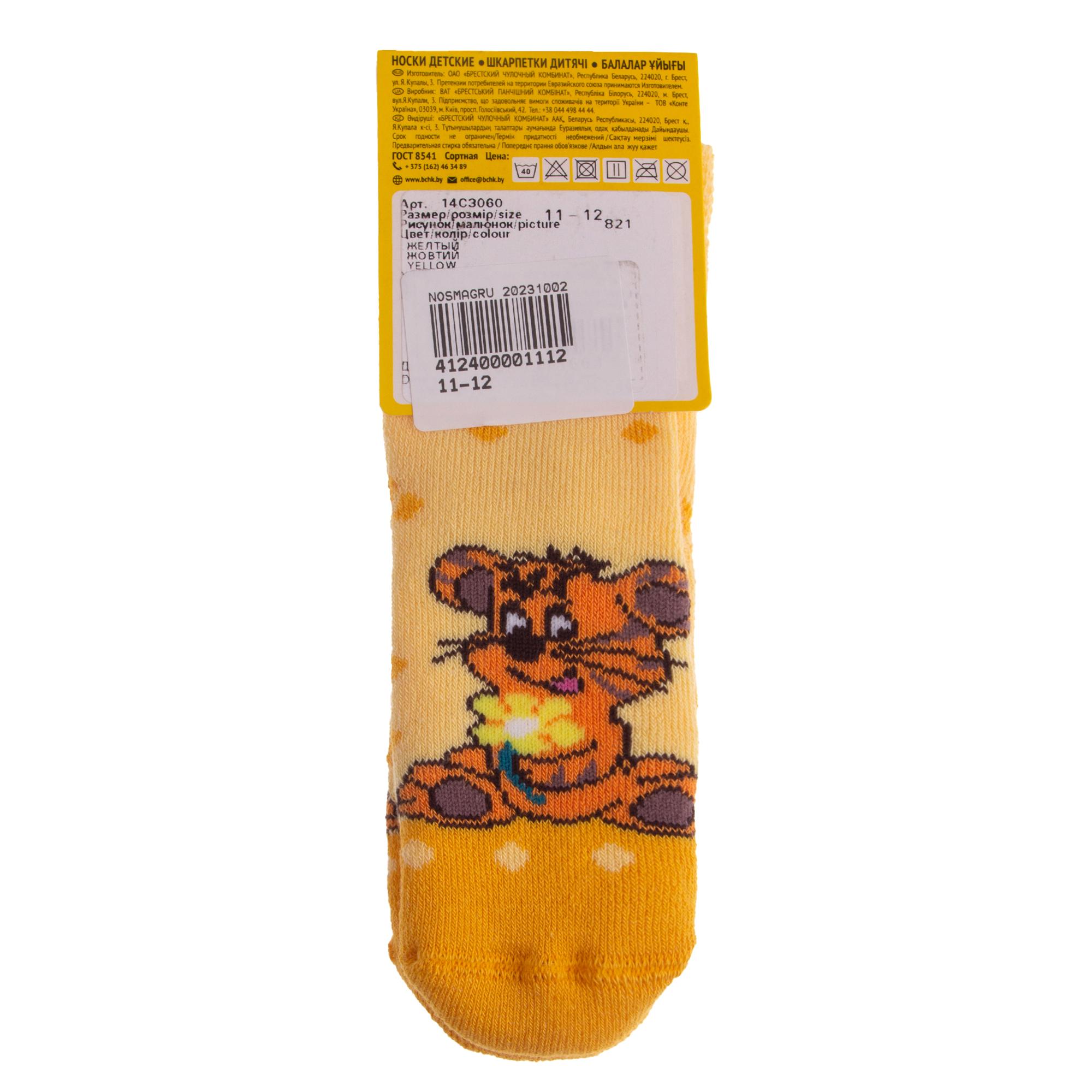 Межсезонные или зимние укороченные детские носки, цвет желтый, теплые, состав: 83% хлопок, 16% ПА, 1% эластан, фабричный артикул 14С3060. Производитель «Брестский чулочный комбинат ОАО, Беларусь» под брендом «Брестские (бчк)».