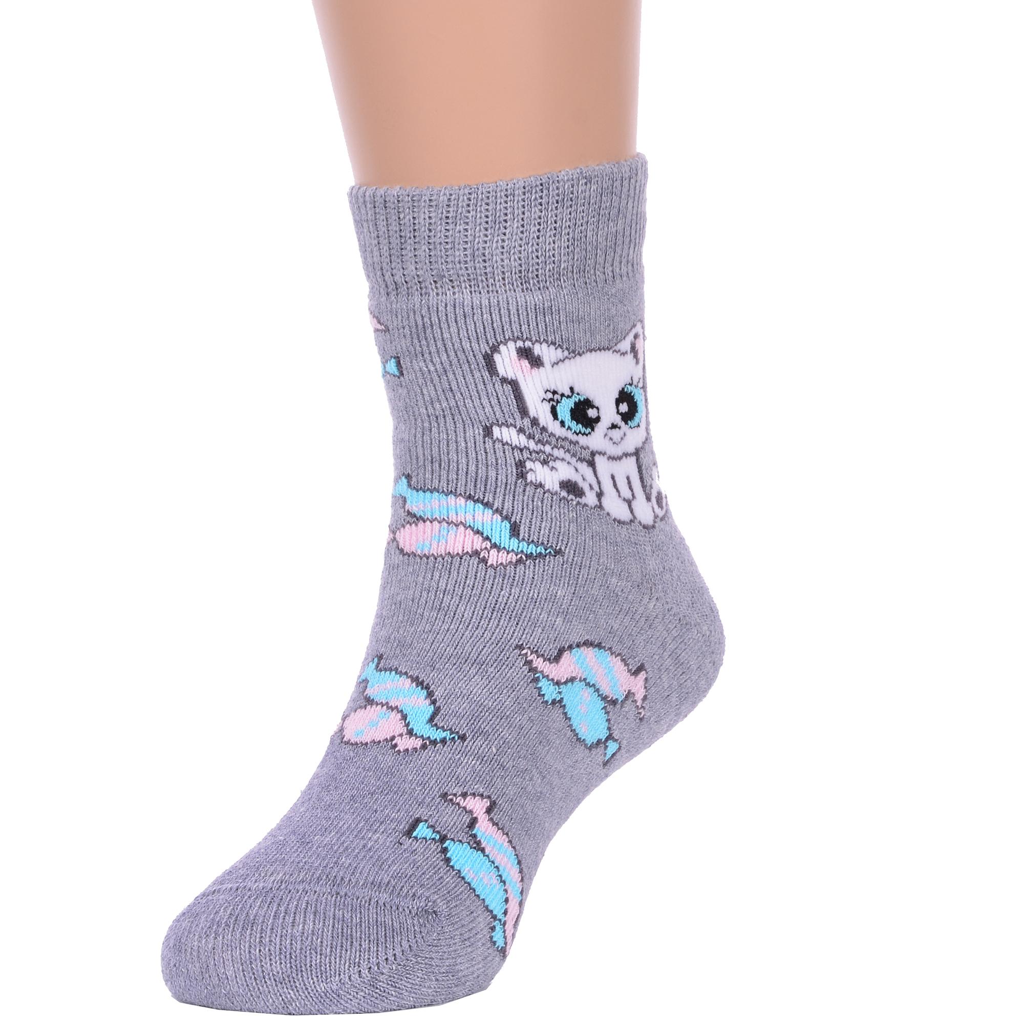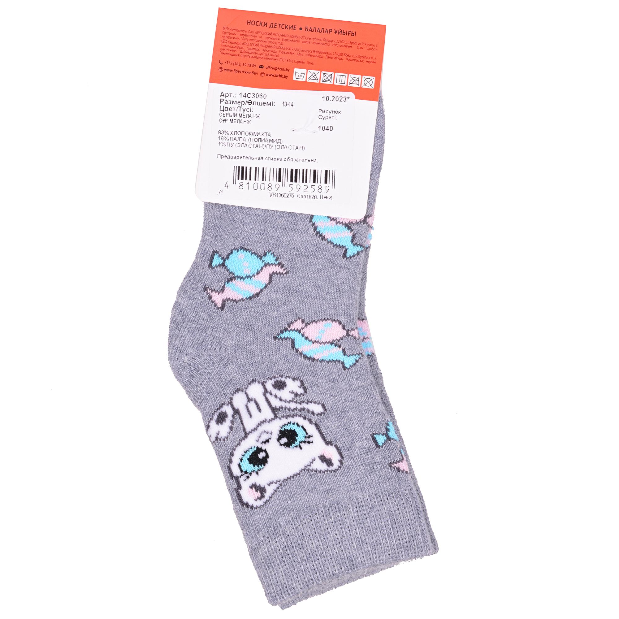 Межсезонные или зимние укороченные детские носки, цвет серый, теплые, повседневные, махровые, возможно бесшовные, принт (рисунок): животные, еда и напитки, с узором, состав: 83% хлопок, 16% полиамид, 1% эластан, арт. 14С3060. Производитель «Брестский чулочный комбинат ОАО, Беларусь» под брендом «Брестские (бчк)».