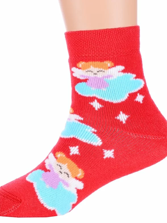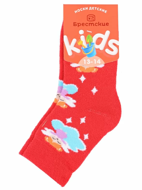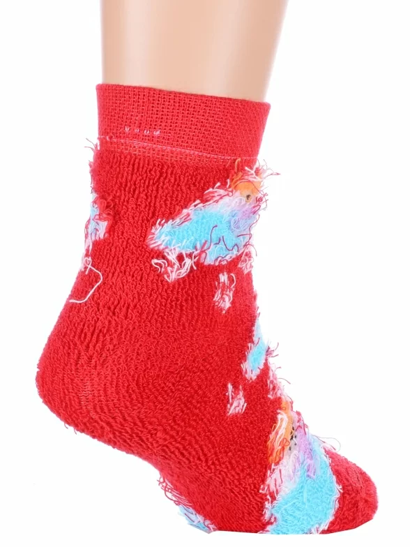 Зимние или межсезонные укороченные детские носки, цвет красный, прикольные, состав: 83% хлопок, 16% полиамид, 1% эластан, фабричный артикул 14С3060. Производитель «Брестский чулочный комбинат ОАО, Беларусь» под брендом «Брестские (бчк)».