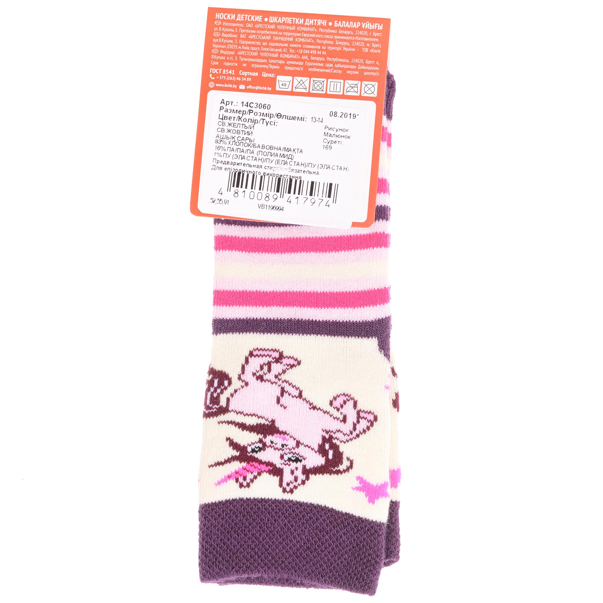 Межсезонные или зимние укороченные детские носки, цвет желтый, теплые, состав: 83% хлопок, 16% полиамид, 1% эластан, фабричный артикул 14С3060. Производитель «Брестский чулочный комбинат ОАО, Беларусь» под брендом «Брестские (бчк)».