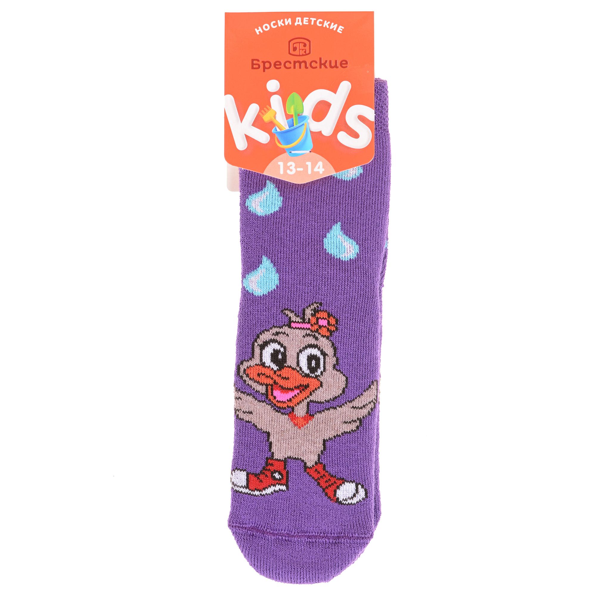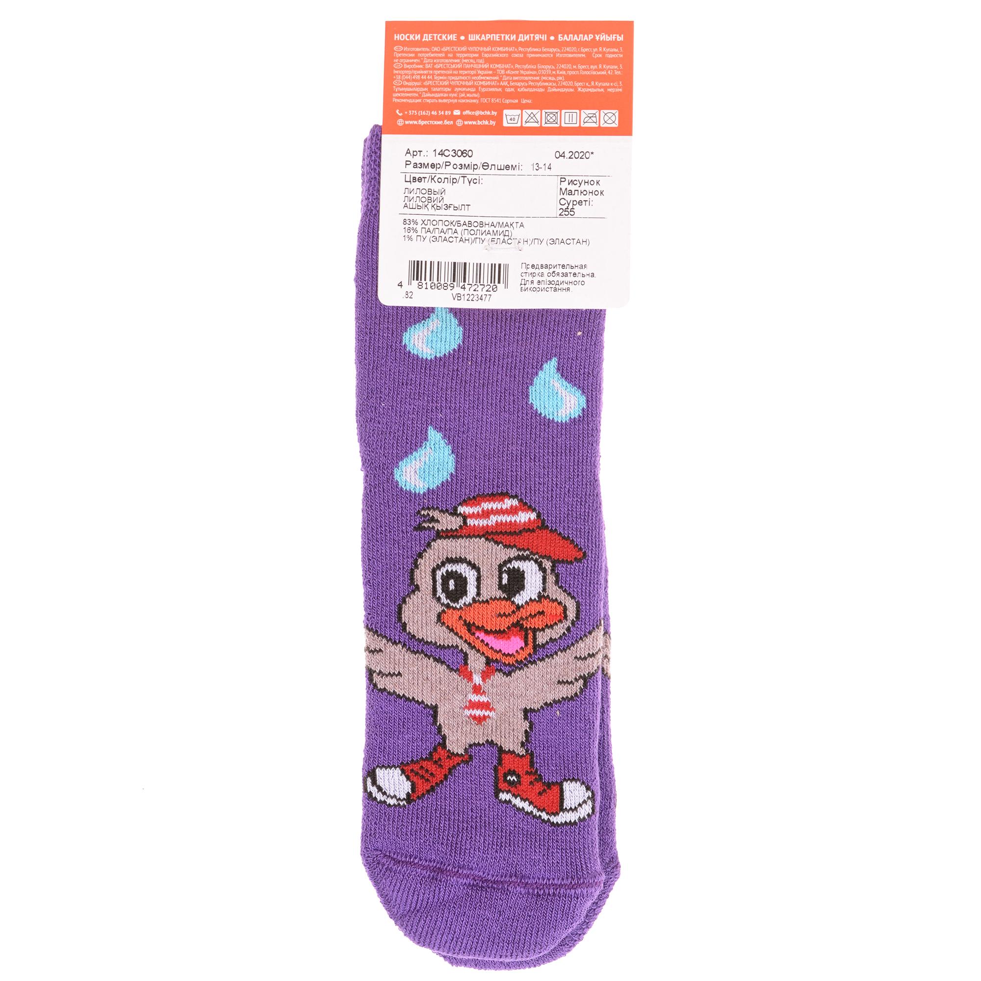 Межсезонные или зимние укороченные детские носки, цвет фиолетовый, теплые, состав: 83% хлопок, 16% полиамид, 1% эластан, фабричный артикул 14С3060. Производитель «Брестский чулочный комбинат ОАО, Беларусь» под брендом «Брестские (бчк)».