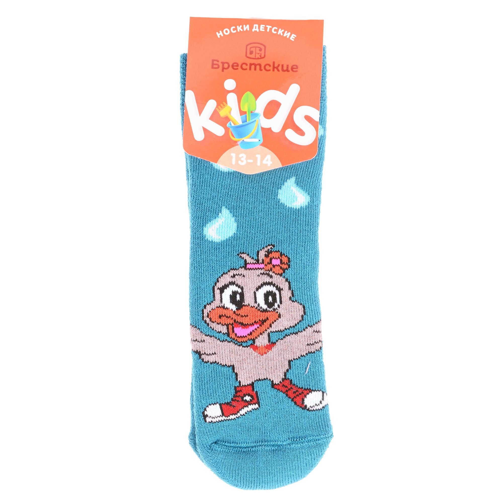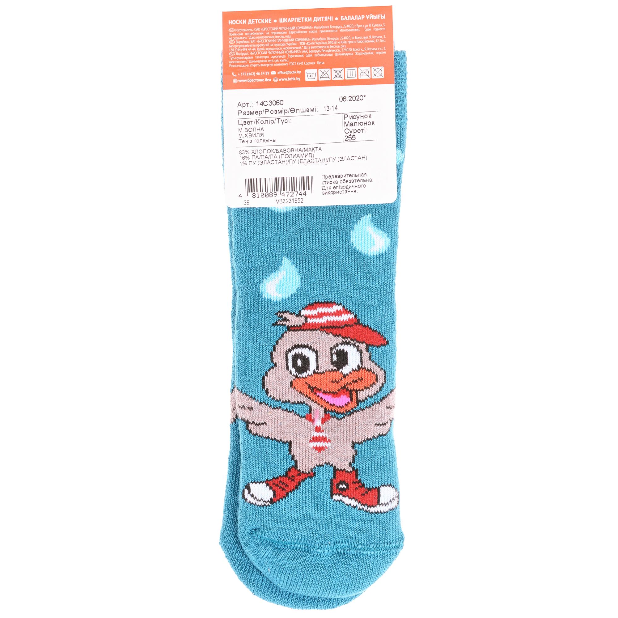 Межсезонные или зимние укороченные детские носки, цвет бирюзовый, прикольные, состав: 83% хлопок, 16% полиамид, 1% эластан, фабричный артикул 14С3060. Производитель «Брестский чулочный комбинат ОАО, Беларусь» под брендом «Брестские (бчк)».