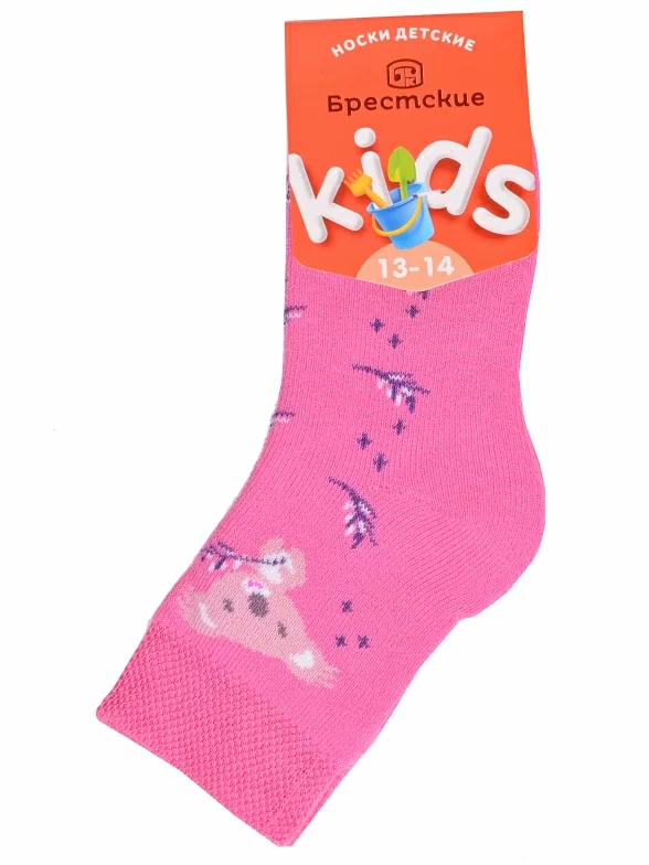 Межсезонные или зимние укороченные детские носки, цвет розовый, прикольные, состав: 83% хлопок, 16% полиамид, 1% эластан, фабричный артикул 14С3060. Производитель «Брестский чулочный комбинат ОАО, Беларусь» под брендом «Брестские (бчк)».