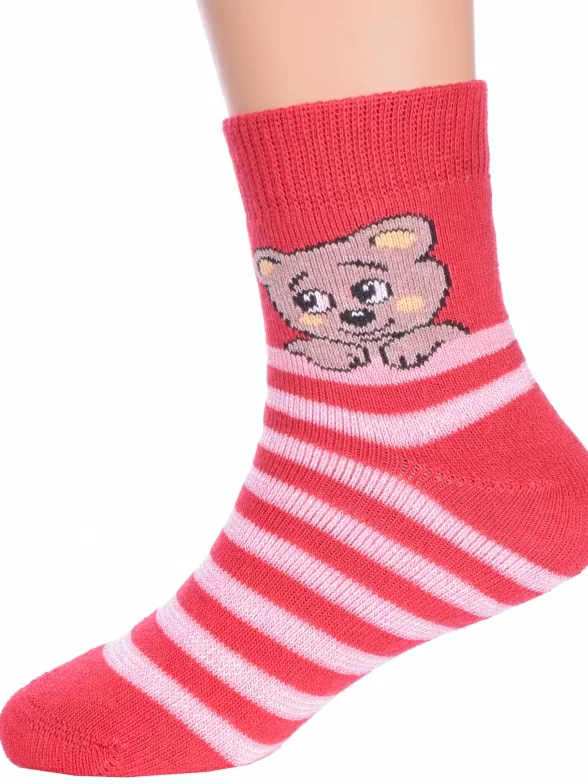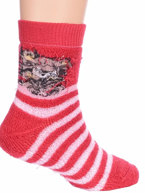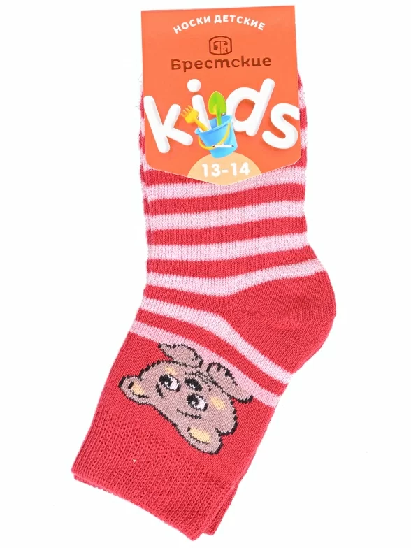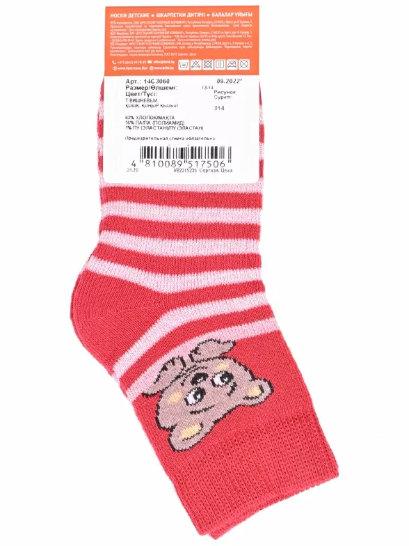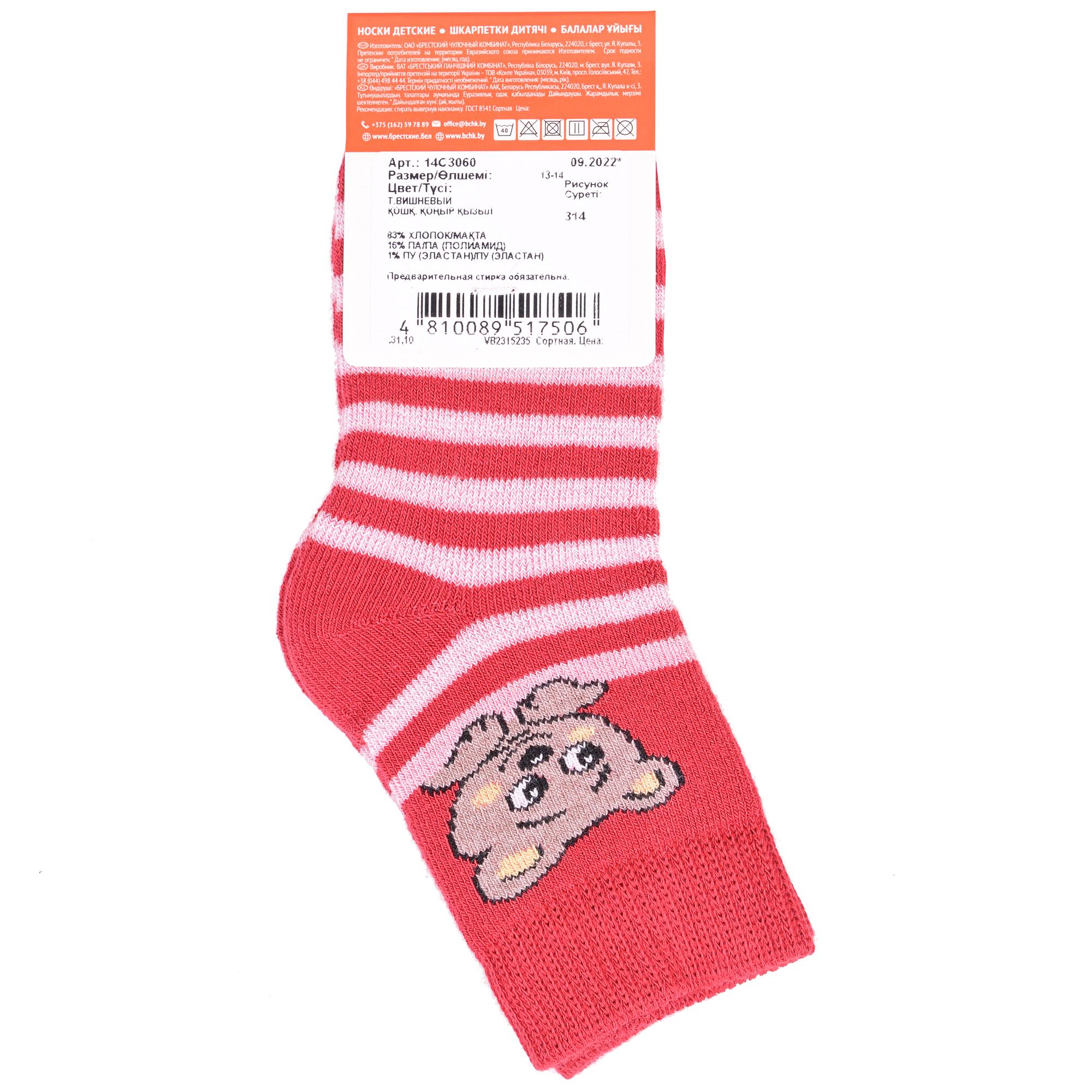 Межсезонные или зимние укороченные детские носки, цвет красный, махровые, состав: 83% хлопок, 16% полиамид, 1% эластан, фабричный артикул 14С3060. Производитель «Брестский чулочный комбинат ОАО, Беларусь» под брендом «Брестские (бчк)».
