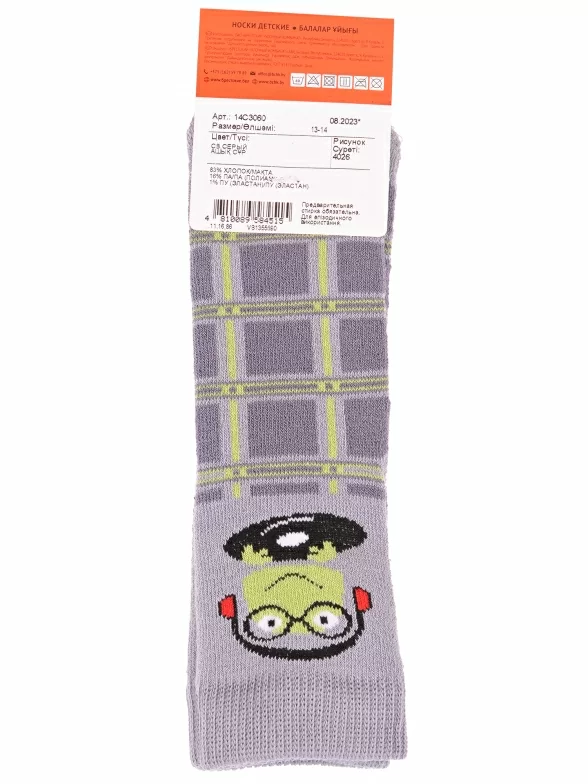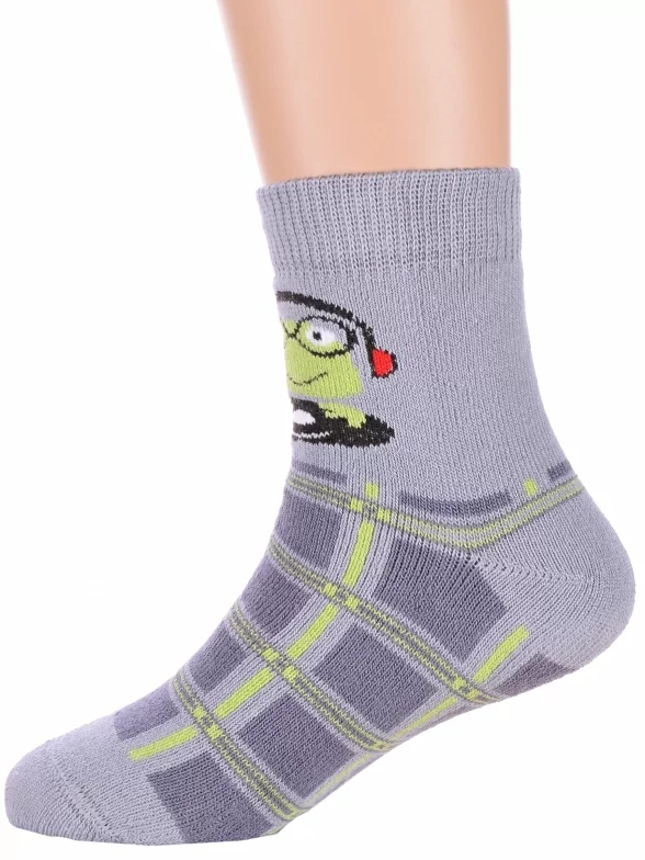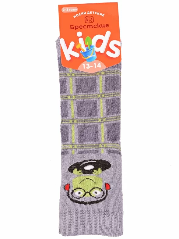 Зимние или межсезонные укороченные детские носки, цвет светло-серый, прикольные, состав: 83% хлопок, 16% полиамид, 1% эластан, фабричный артикул 14С3060. Производитель «Брестский чулочный комбинат ОАО, Беларусь» под брендом «Брестские (бчк)».