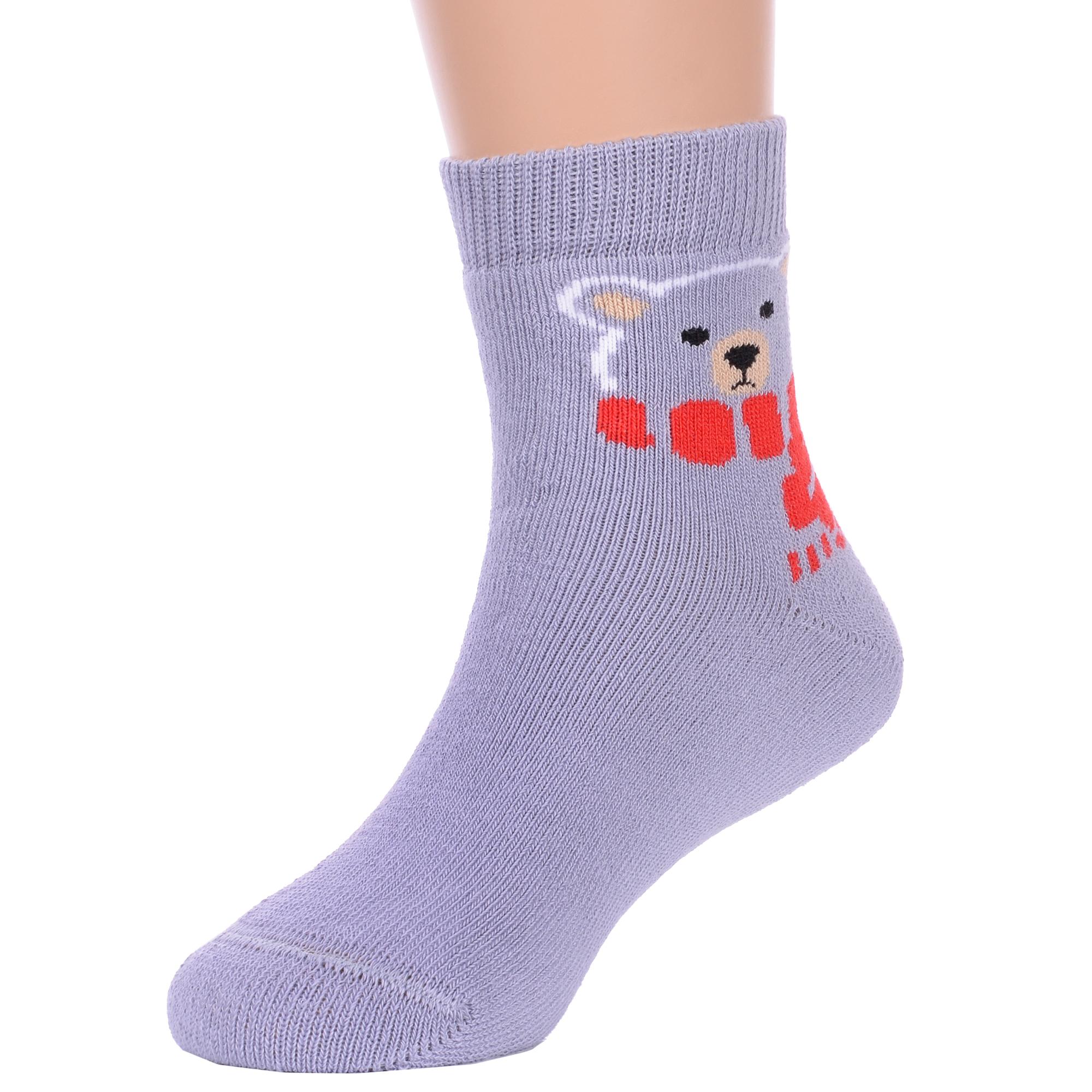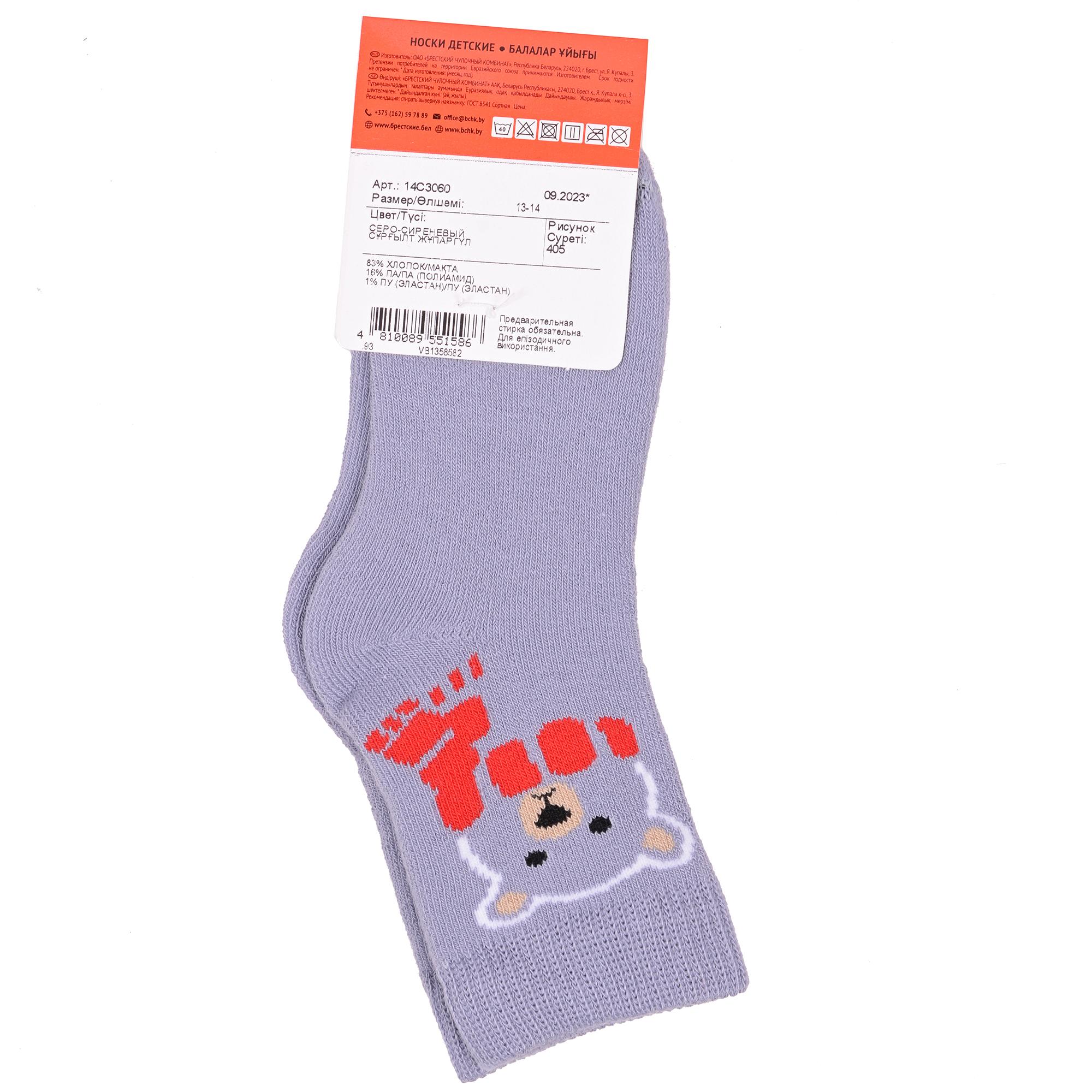 Межсезонные или зимние укороченные детские носки, цвет сиреневый, теплые, повседневные, махровые, возможно бесшовные, принт (рисунок): новый год, зимний, животные, с узором, состав: 83% хлопок, 16% полиамид, 1% эластан, арт. 14С3060. Производитель «Брестский чулочный комбинат ОАО, Беларусь» под брендом «Брестские (бчк)».