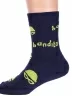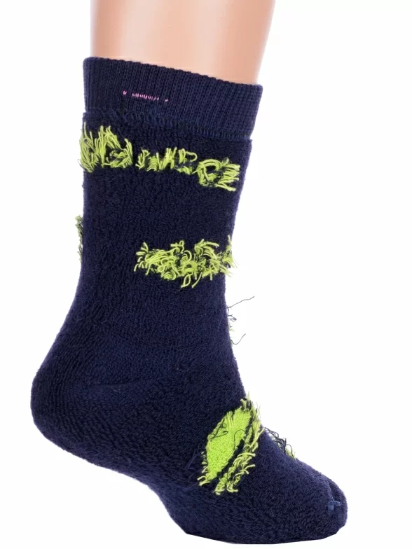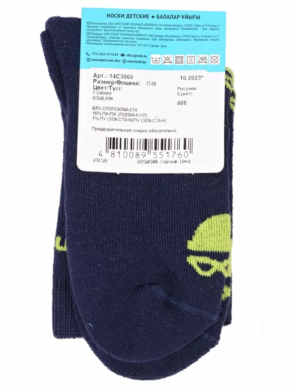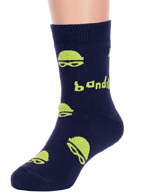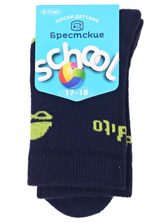 Межсезонные или зимние укороченные детские носки, цвет темно-синий, теплые, повседневные, махровые, возможно бесшовные, принт (рисунок): надписи, люди, с узором, состав: 83% хлопок, 16% полиамид, 1% эластан, арт. 14С3060. Производитель «Брестский чулочный комбинат ОАО, Беларусь» под брендом «Брестские (бчк)».