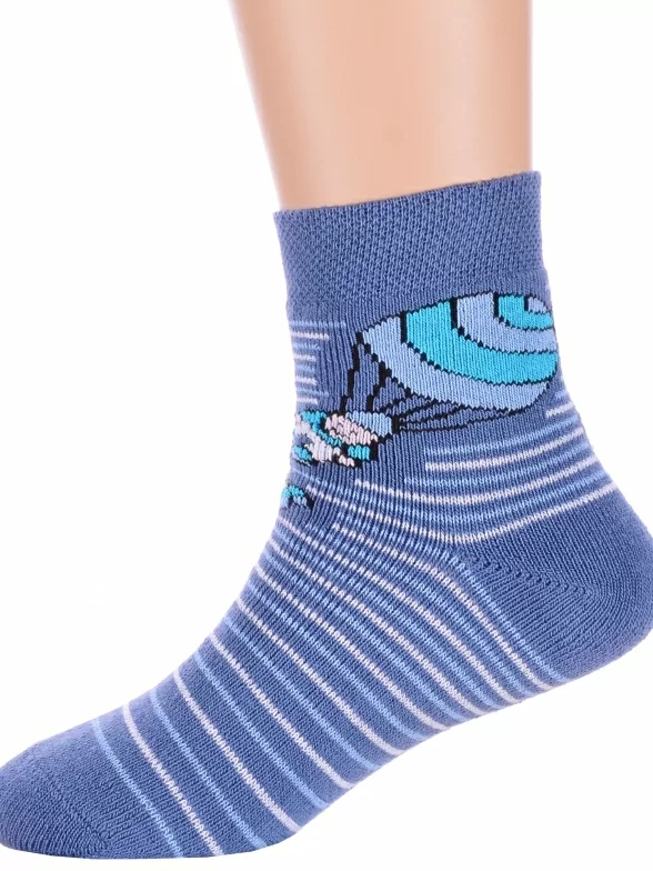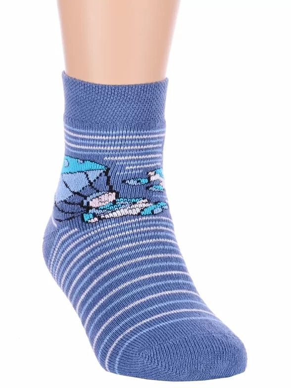 Зимние или межсезонные укороченные детские носки, цвет джинс, прикольные, состав: 83% хлопок, 16% полиамид, 1% эластан, фабричный артикул 14С3060. Производитель «Брестский чулочный комбинат ОАО, Беларусь» под брендом «Брестские (бчк)».