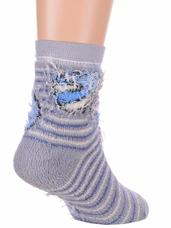 Зимние или межсезонные укороченные детские носки, цвет светло-серый, прикольные, состав: 83% хлопок, 16% полиамид, 1% эластан, фабричный артикул 14С3060. Производитель «Брестский чулочный комбинат ОАО, Беларусь» под брендом «Брестские (бчк)».