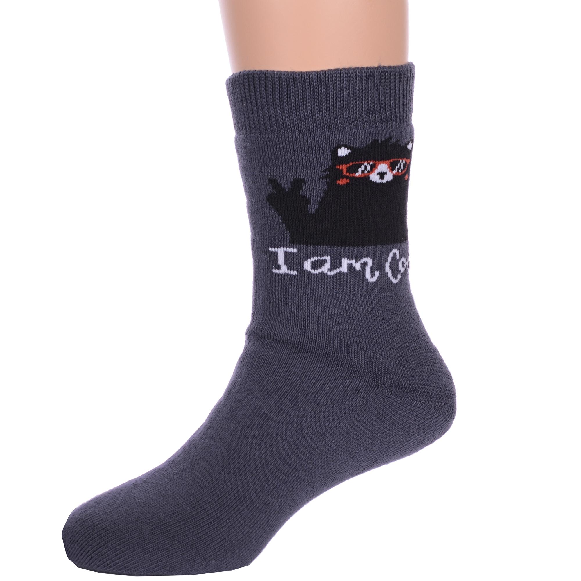 Межсезонные или зимние укороченные детские носки, цвет темно-серый, теплые, повседневные, махровые, возможно бесшовные, принт (рисунок): надписи, животные, с узором, состав: 83% хлопок, 16% полиамид, 1% эластан, арт. 14С3060. Производитель «Брестский чулочный комбинат ОАО, Беларусь» под брендом «Брестские (бчк)».