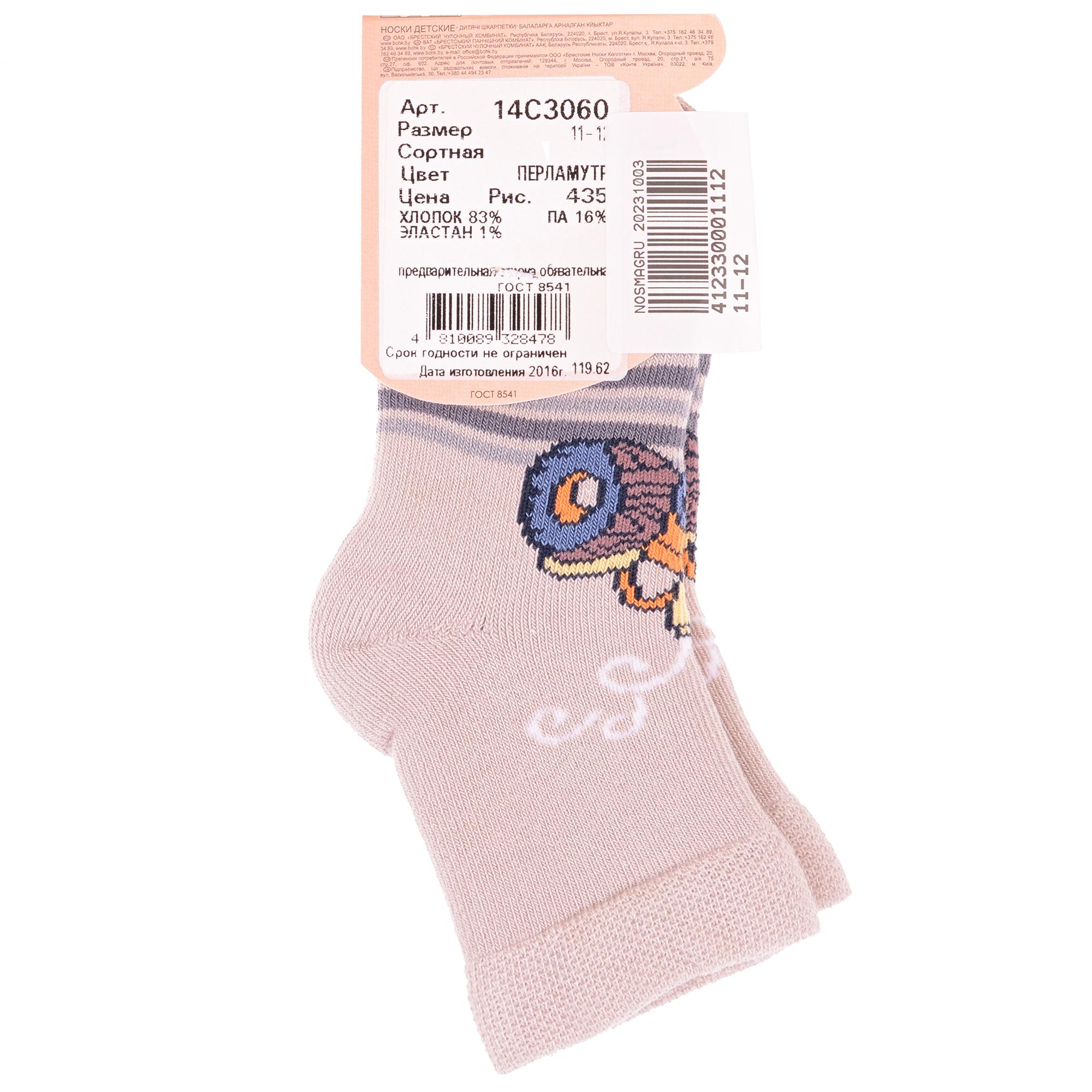 Зимние или межсезонные укороченные детские носки, цвет бежевый, прикольные, состав: 83% хлопок, 16% полиамид, 1% эластан, фабричный артикул 14С3060. Производитель «Брестский чулочный комбинат ОАО, Беларусь» под брендом «Брестские (бчк)».