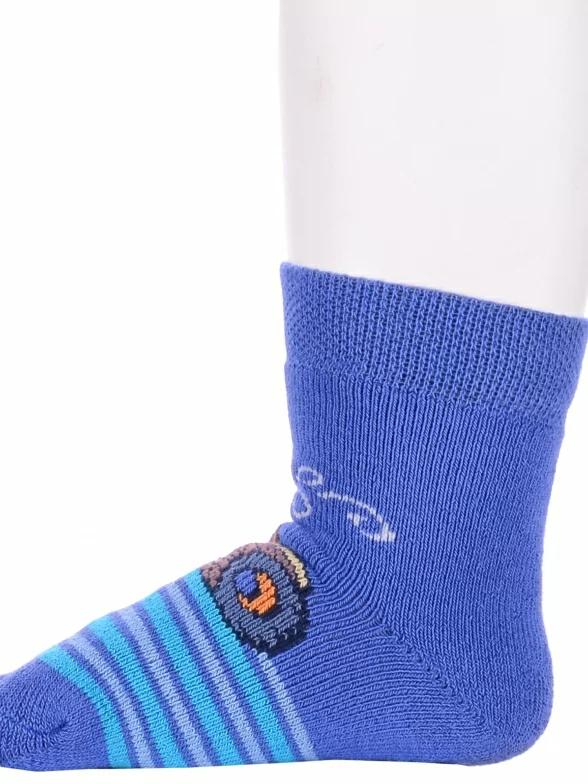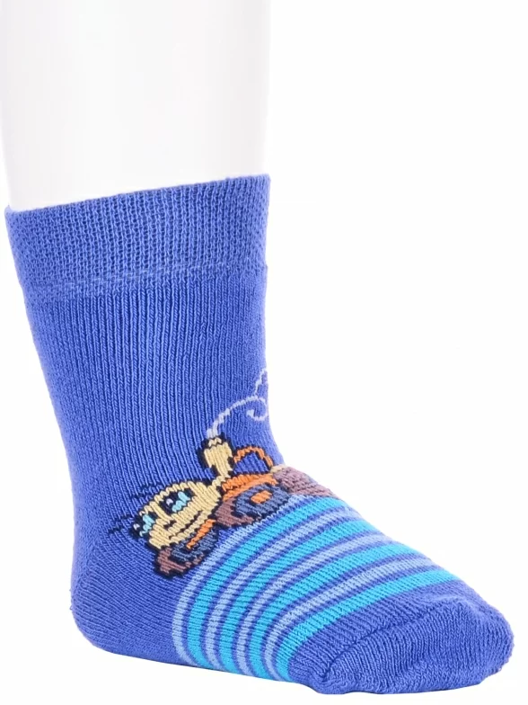 Зимние или межсезонные укороченные детские носки, цвет синий, прикольные, состав: 83% хлопок, 16% полиамид, 1% эластан, фабричный артикул 14С3060. Производитель «Брестский чулочный комбинат ОАО, Беларусь» под брендом «Брестские (бчк)».