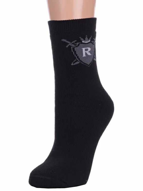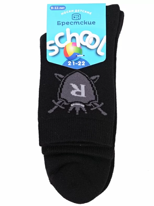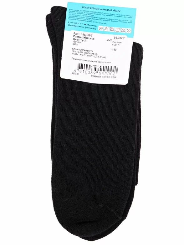Межсезонные или зимние укороченные детские носки, цвет черный, теплые, повседневные, махровые, шов кеттельный (бесшовная технология), принт (рисунок): с узором, состав: 83% хлопок, 16% полиамид, 1% эластан, арт. 14С3060. Производитель «Брестский чулочный комбинат ОАО, Беларусь» под брендом «Брестские (бчк)».
