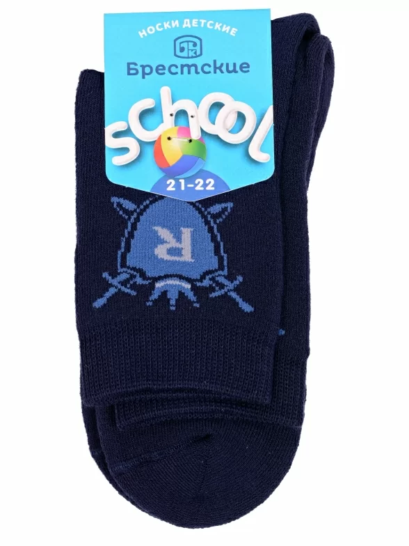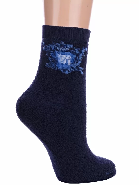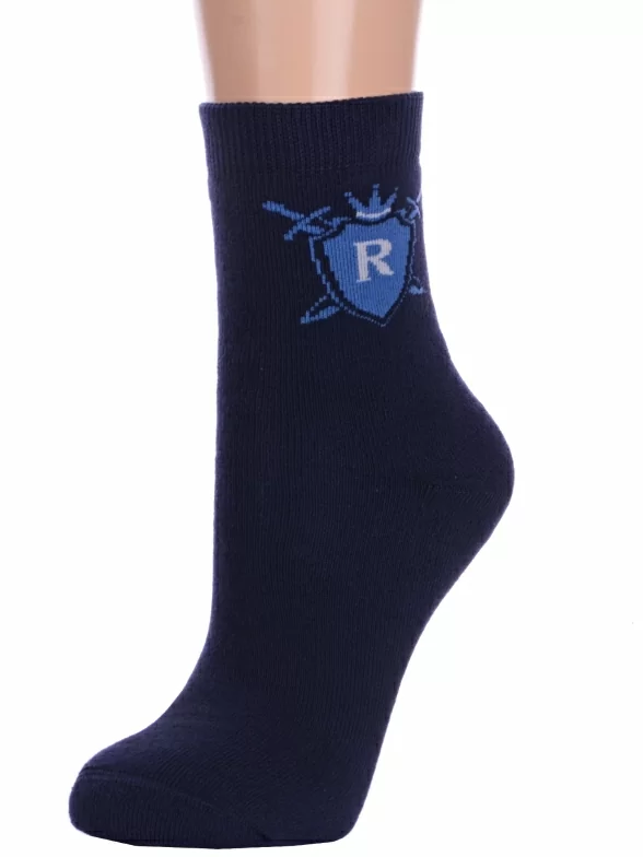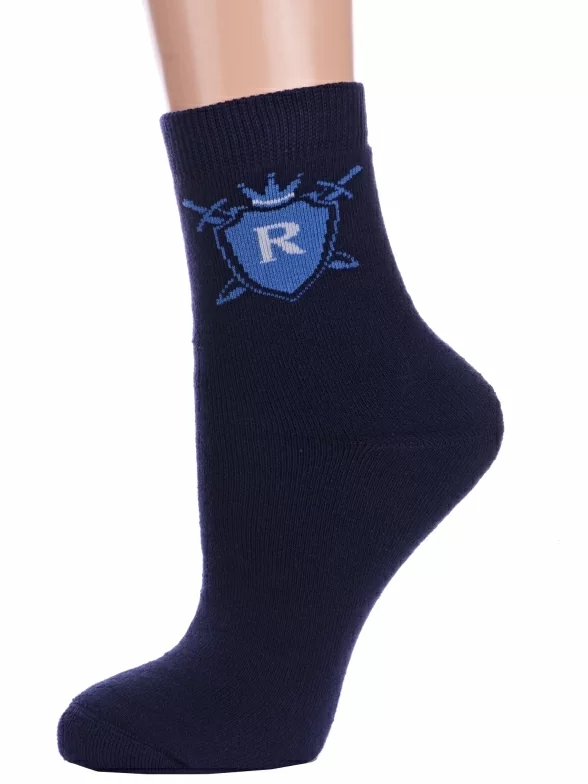Межсезонные или зимние укороченные детские носки, цвет темно-синий, теплые, повседневные, махровые, шов кеттельный (бесшовная технология), принт (рисунок): с узором, состав: 83% хлопок, 16% полиамид, 1% эластан, арт. 14С3060. Производитель «Брестский чулочный комбинат ОАО, Беларусь» под брендом «Брестские (бчк)».