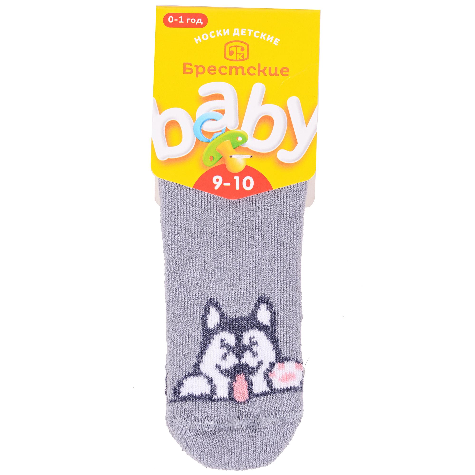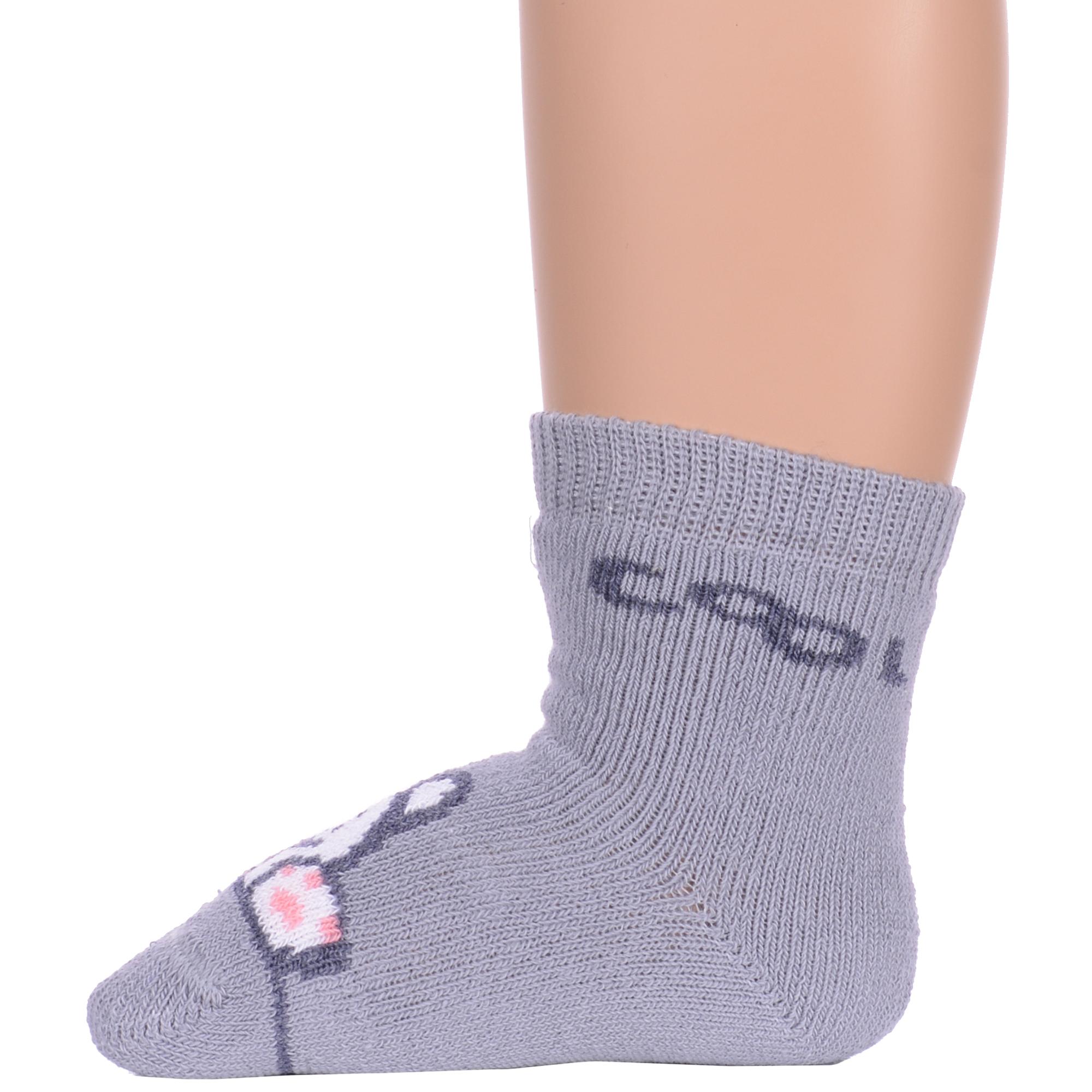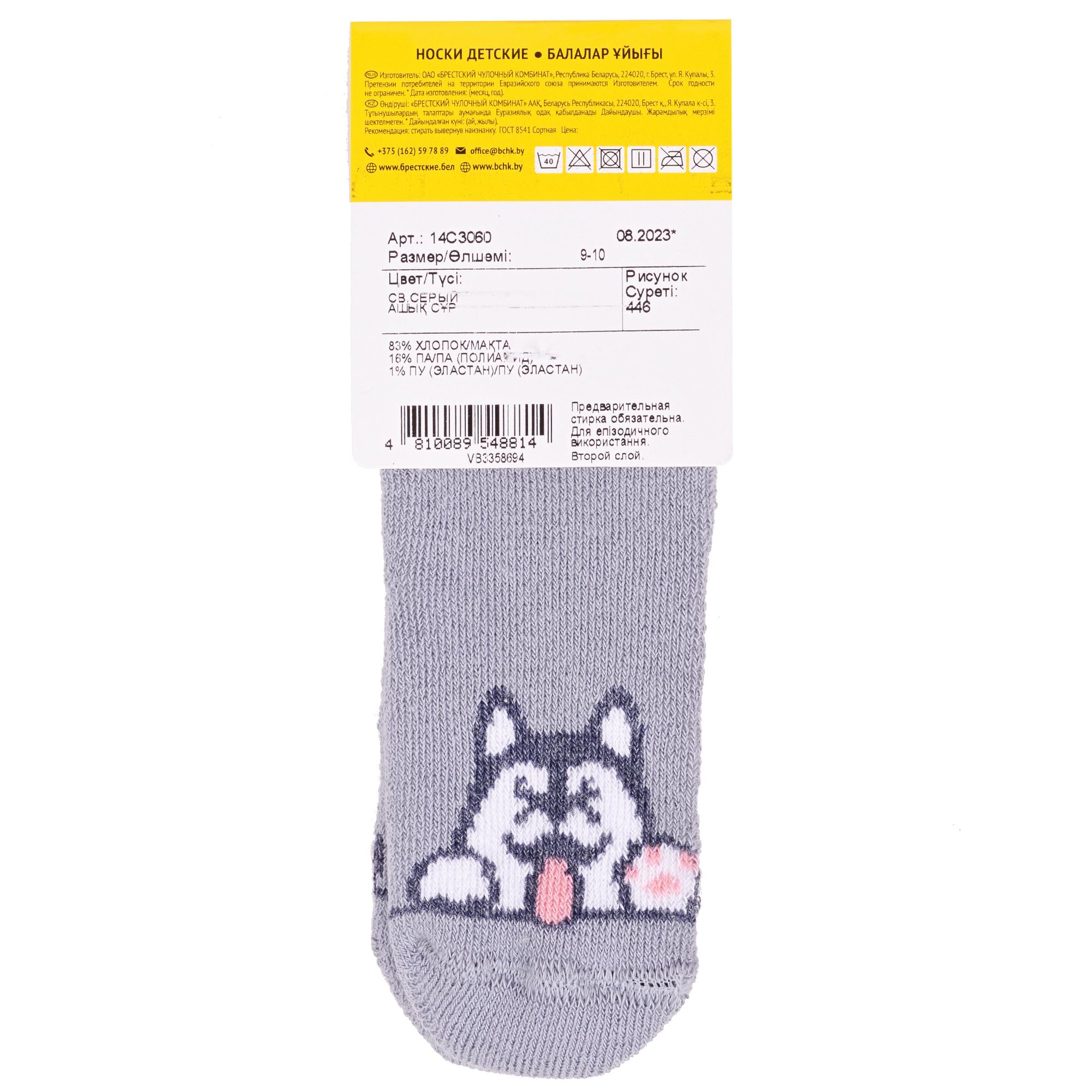 Межсезонные или зимние укороченные детские носки, цвет светло-серый, теплые, повседневные, махровые, возможно бесшовные, принт (рисунок): надписи, животные, с узором, состав: 83% хлопок, 16% полиамид, 1% эластан, арт. 14С3060. Производитель «Брестский чулочный комбинат ОАО, Беларусь» под брендом «Брестские (бчк)».