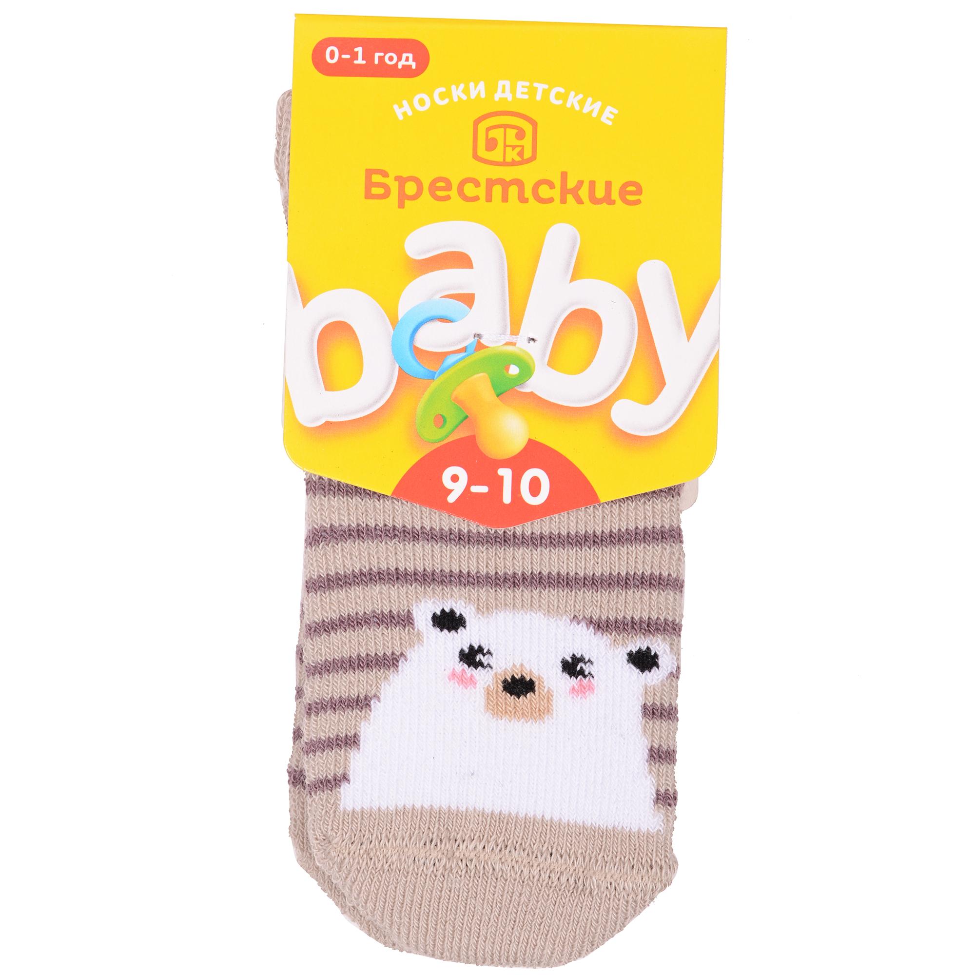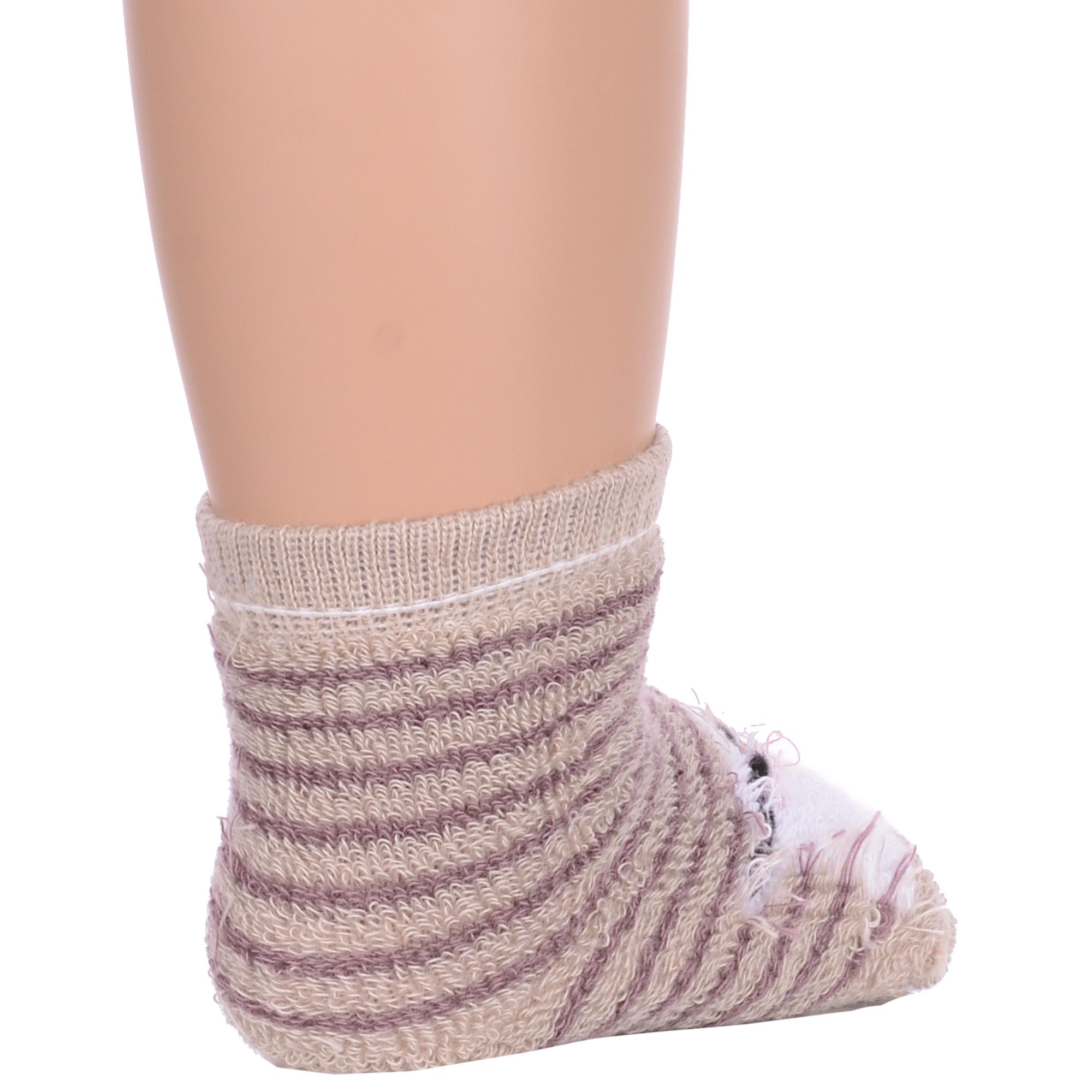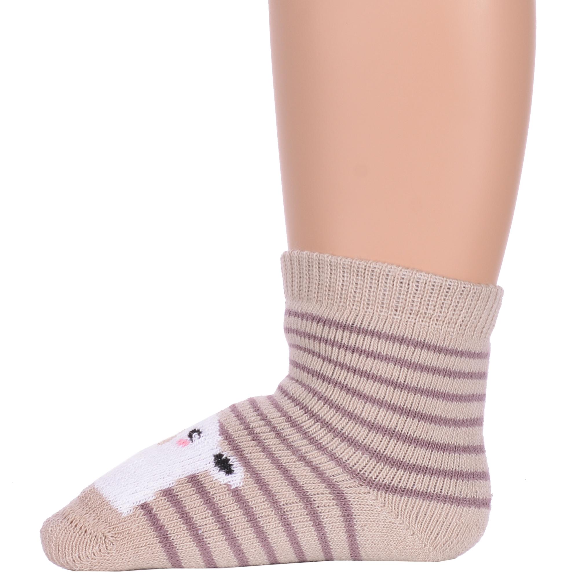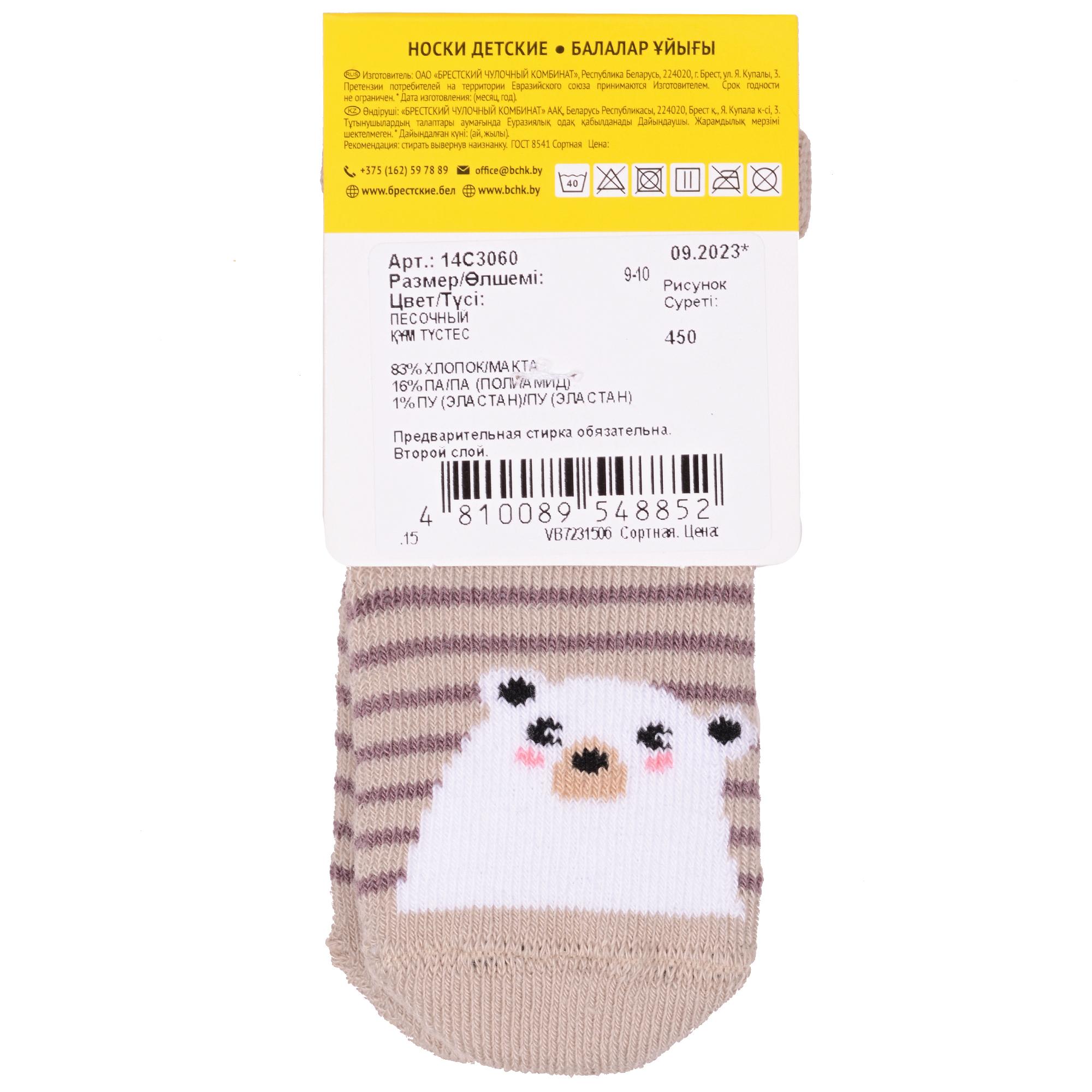 Межсезонные или зимние укороченные детские носки, цвет бежевый, теплые, повседневные, махровые, шов кеттельный (бесшовная технология), принт (рисунок): полоски, животные, с узором, состав: 83% хлопок, 16% полиамид, 1% эластан, арт. 14С3060. Производитель «Брестский чулочный комбинат ОАО, Беларусь» под брендом «Брестские (бчк)».