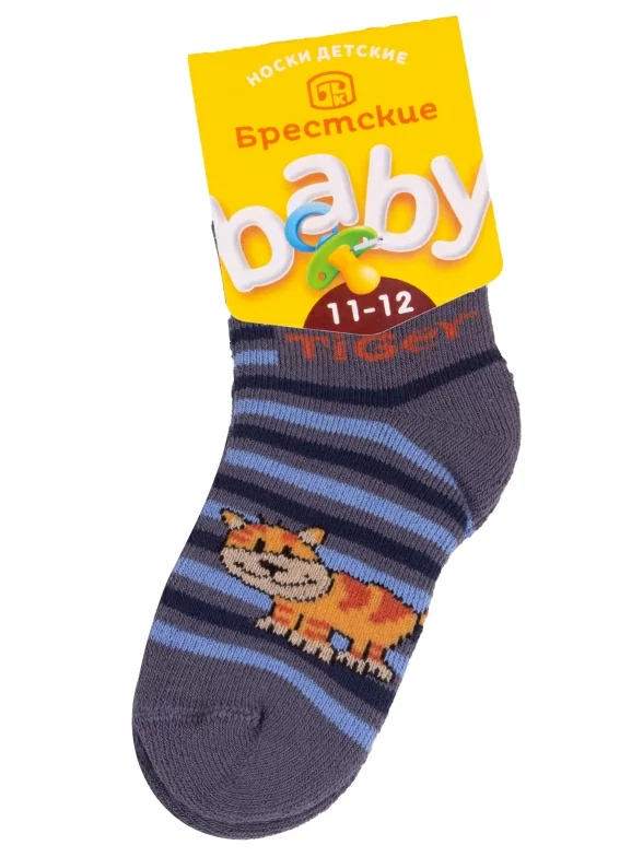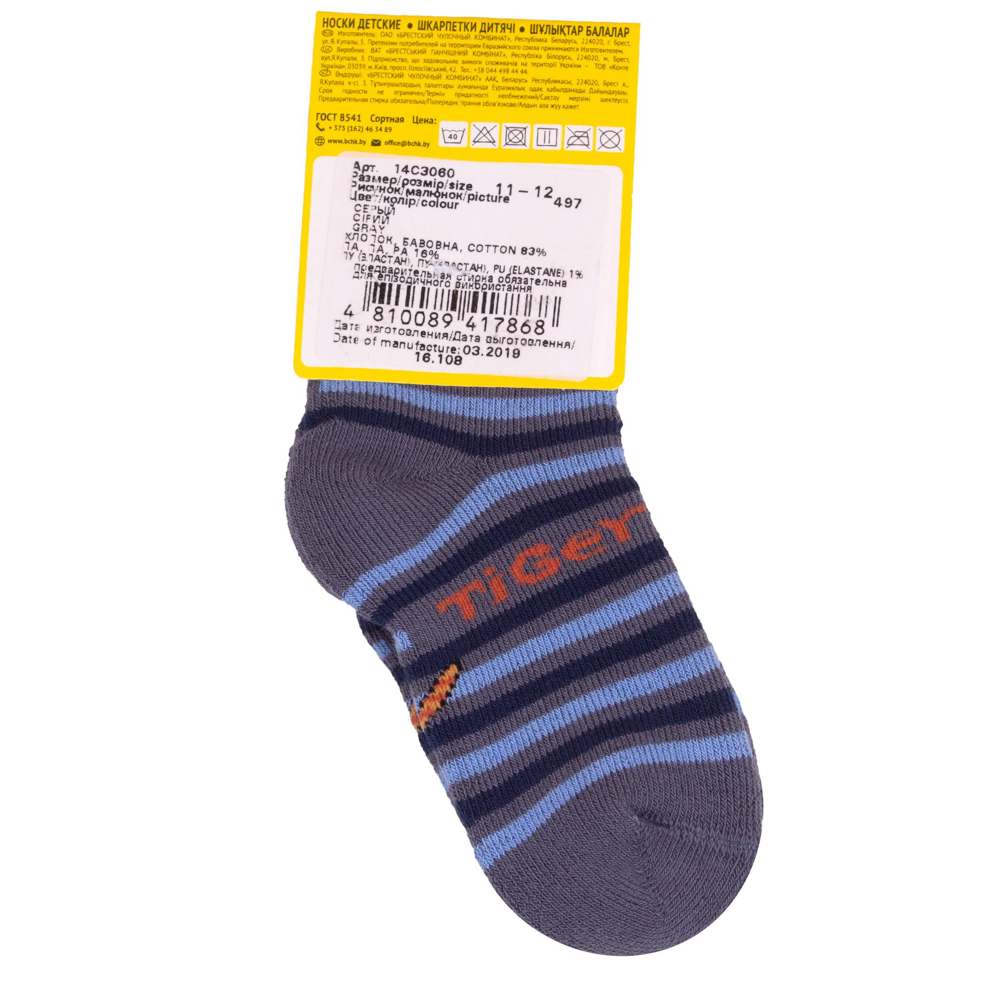 Межсезонные или зимние укороченные детские носки, цвет серый, прикольные, состав: 83% хлопок, 16% ПА, 1% эластан, фабричный артикул 14С3060. Производитель «Брестский чулочный комбинат ОАО, Беларусь» под брендом «Брестские (бчк)».