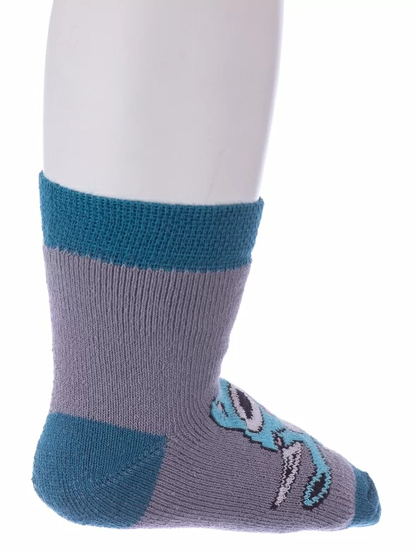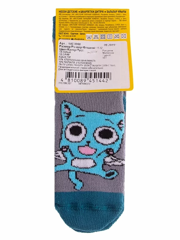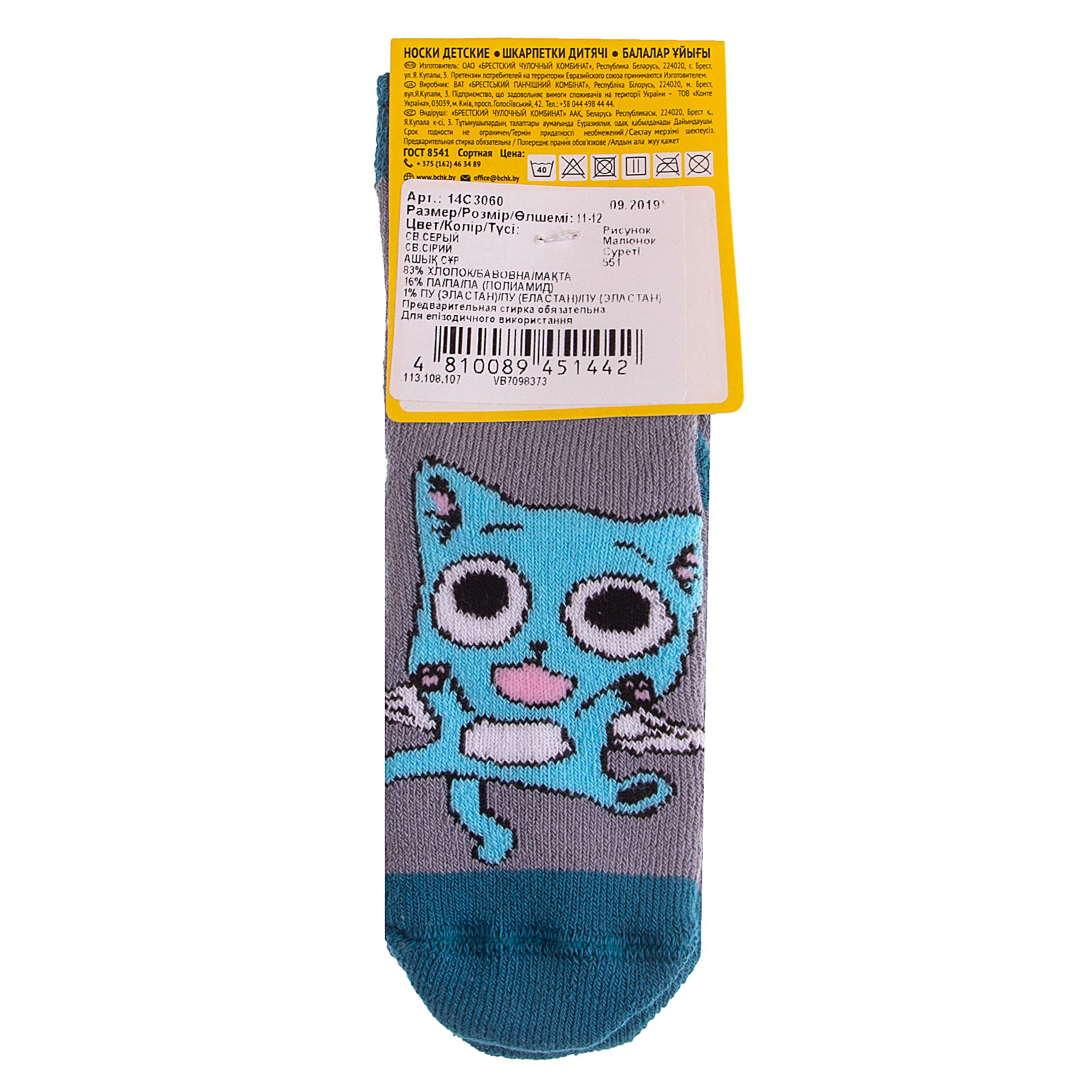 Межсезонные или зимние укороченные детские носки, цвет серый, теплые, состав: 83% хлопок, 16% ПА, 1% эластан, фабричный артикул 14С3060. Производитель «Брестский чулочный комбинат ОАО, Беларусь» под брендом «Брестские (бчк)».
