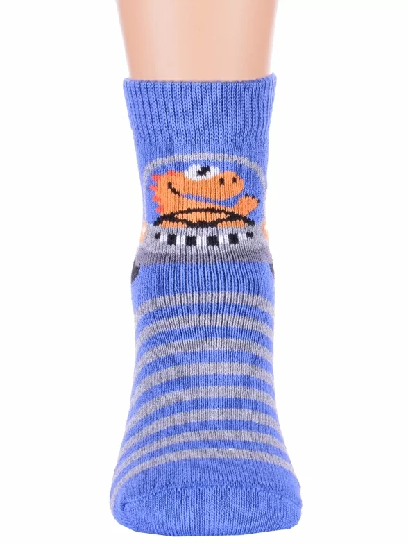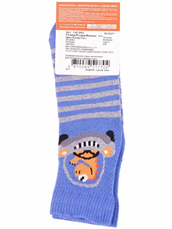 Зимние или межсезонные укороченные детские носки, цвет синий, прикольные, состав: 83% хлопок, 16% полиамид, 1% эластан, фабричный артикул 14С3060. Производитель «Брестский чулочный комбинат ОАО, Беларусь» под брендом «Брестские (бчк)».