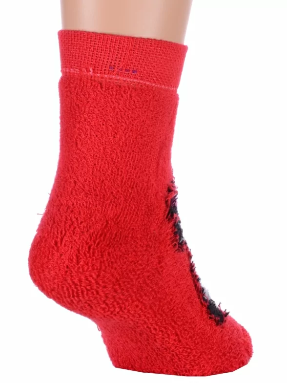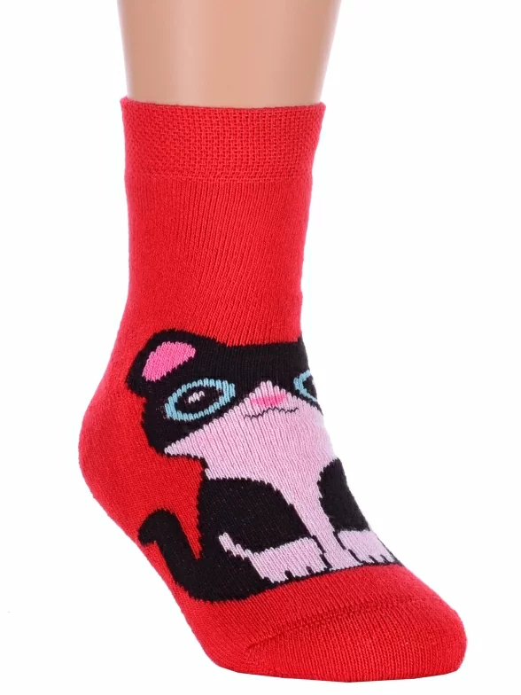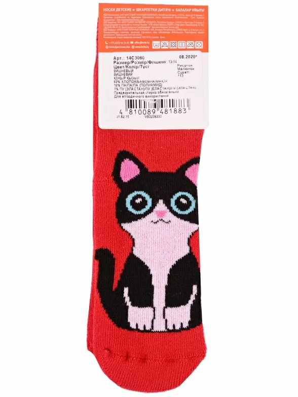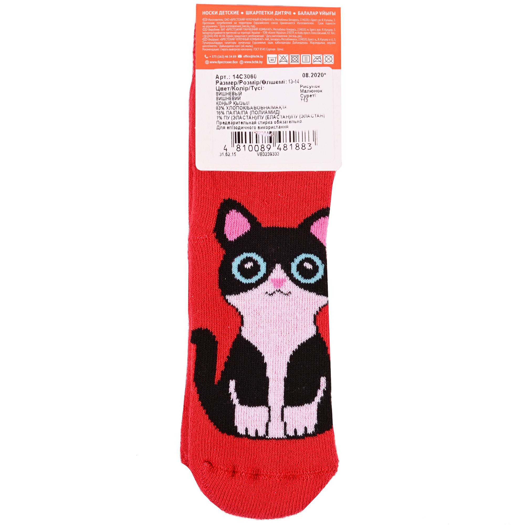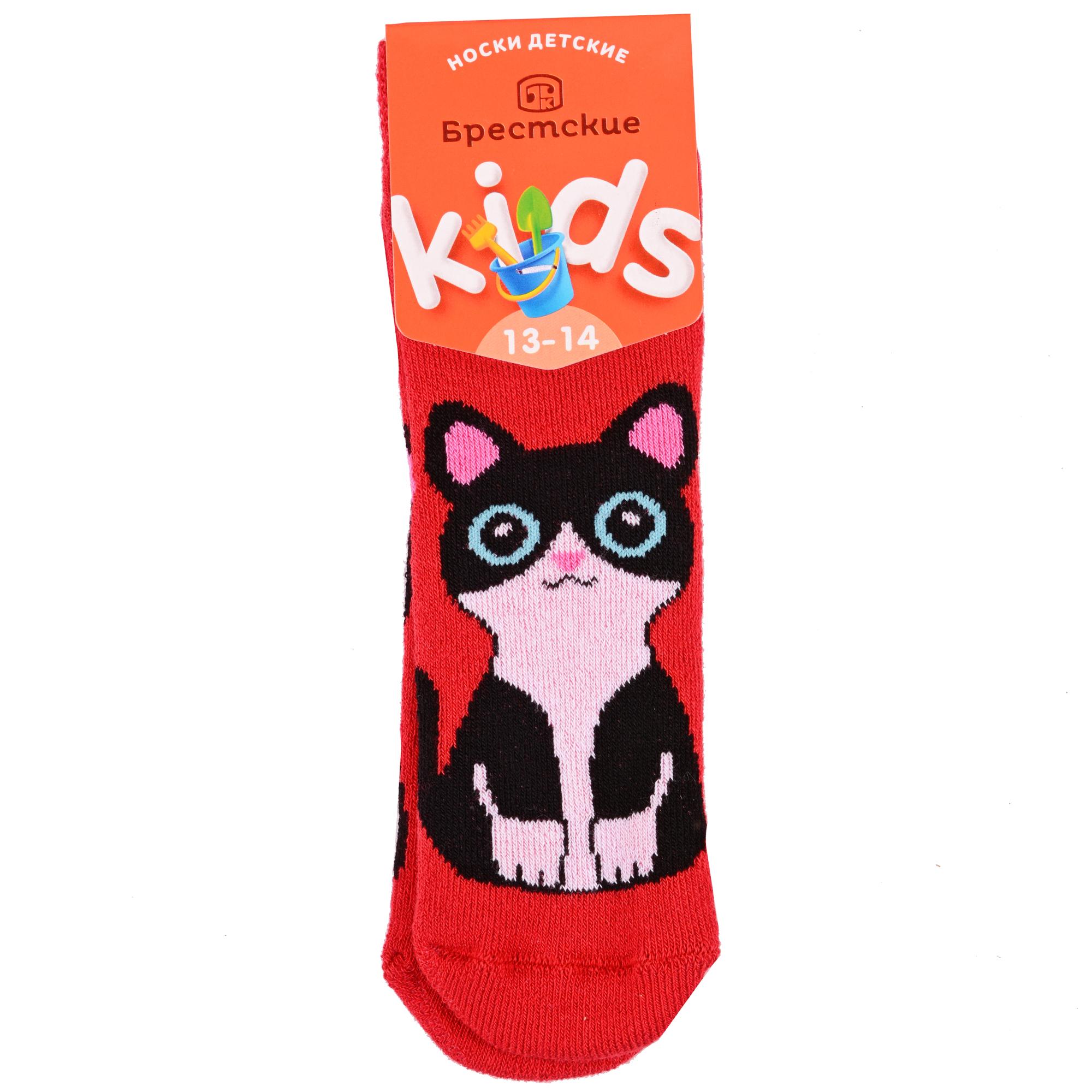 Зимние или межсезонные укороченные детские носки, цвет красный, прикольные, состав: 83% хлопок, 16% полиамид, 1% эластан, фабричный артикул 14С3060. Производитель «Брестский чулочный комбинат ОАО, Беларусь» под брендом «Брестские (бчк)».