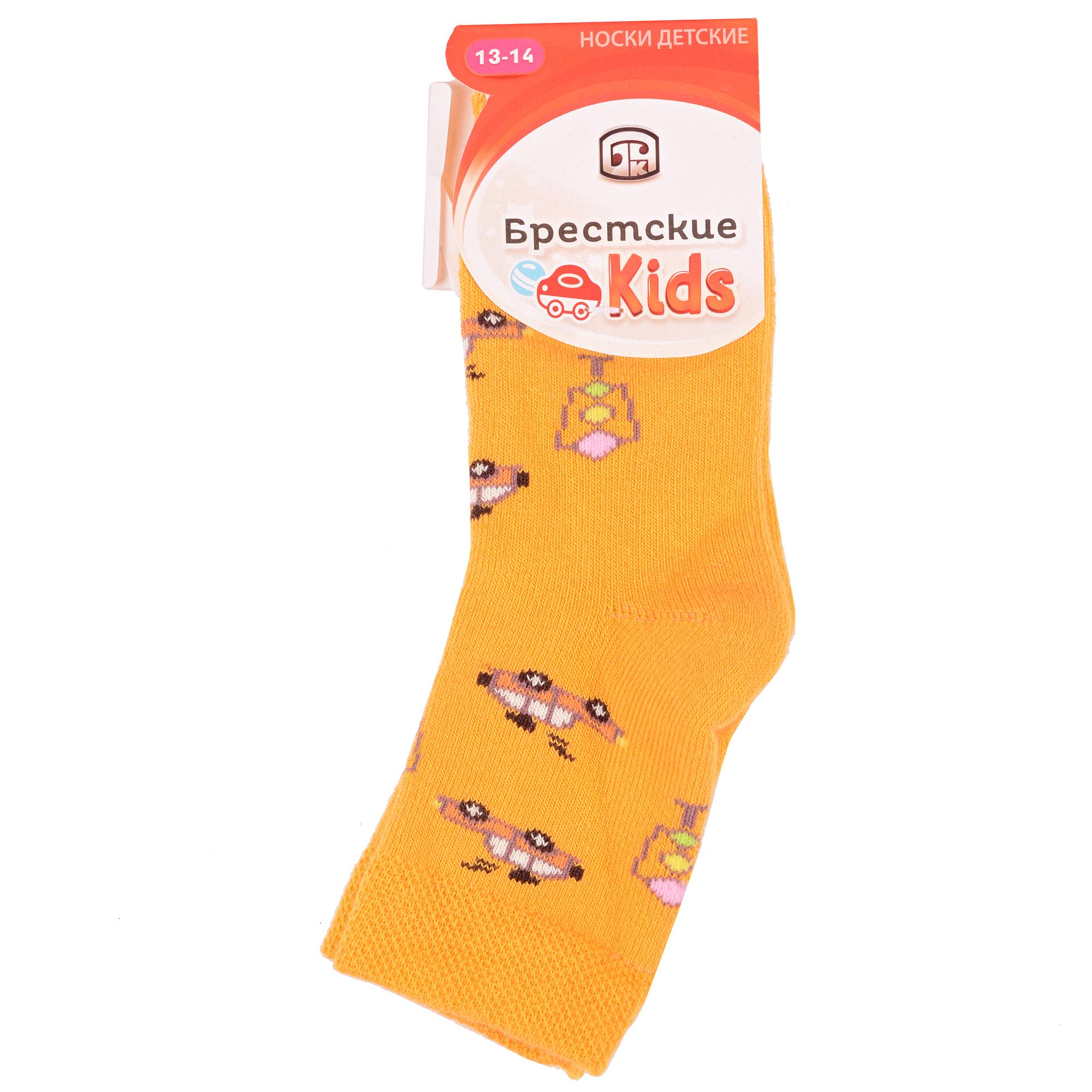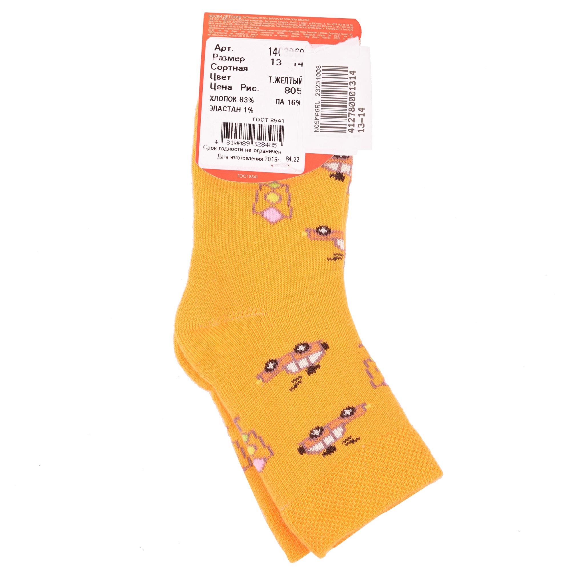Зимние или межсезонные укороченные детские носки, цвет желтый, прикольные, состав: 83% хлопок, 16% полиамид, 1% эластан, фабричный артикул 14С3060. Производитель «Брестский чулочный комбинат ОАО, Беларусь» под брендом «Брестские (бчк)».