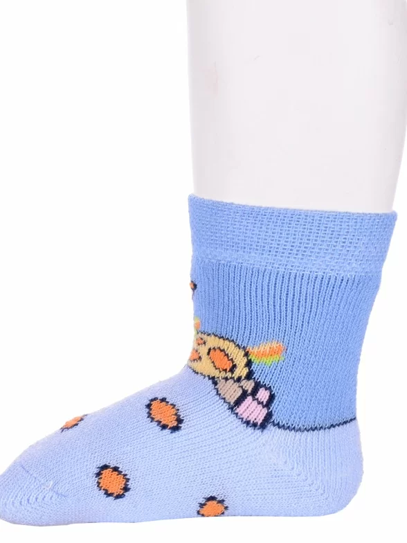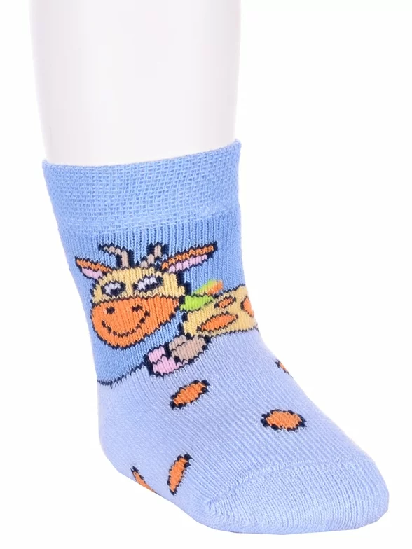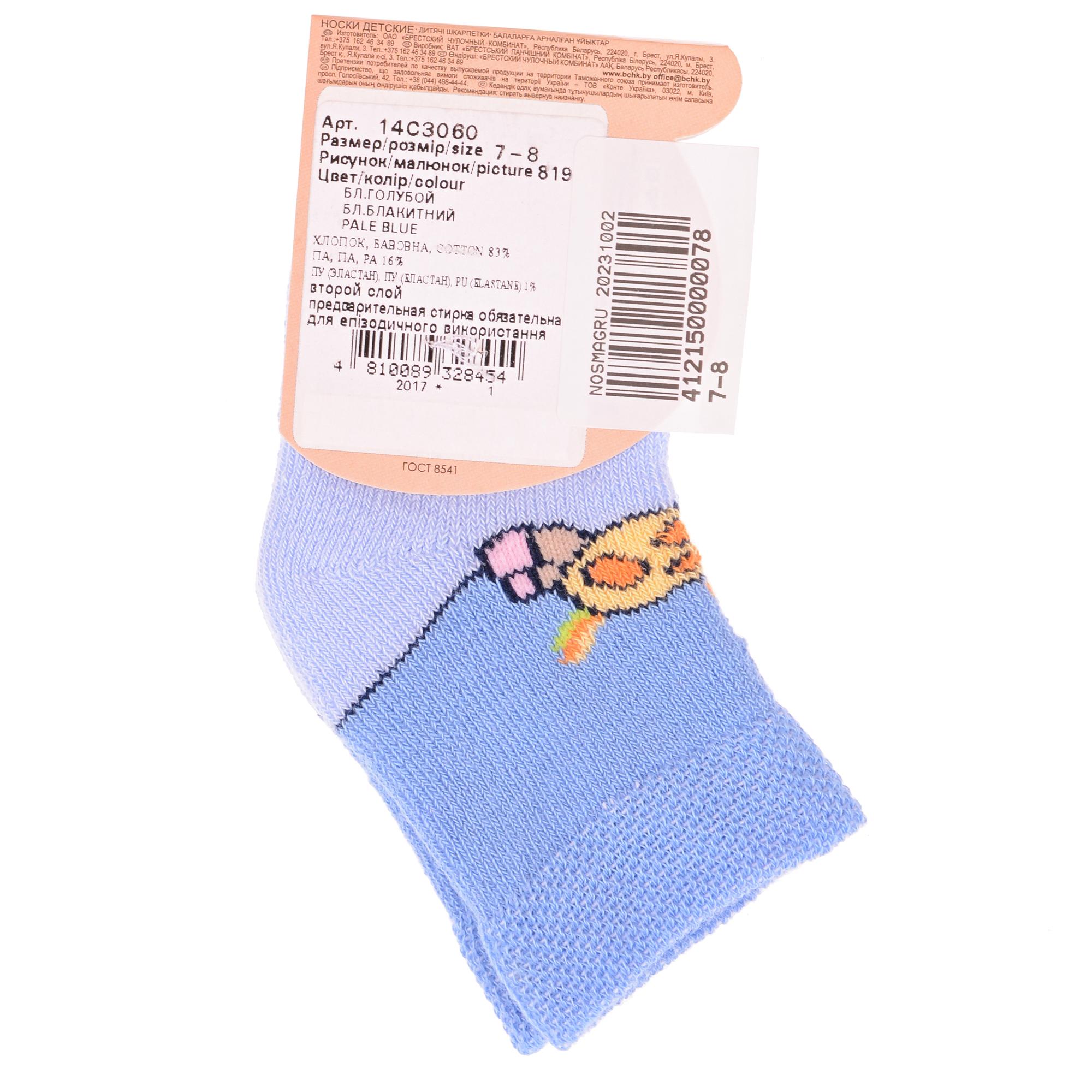 Межсезонные или зимние укороченные детские носки, цвет голубой, теплые, состав: 83% хлопок, 16% полиамид, 1% эластан, фабричный артикул 14С3060. Производитель «Брестский чулочный комбинат ОАО, Беларусь» под брендом «Брестские (бчк)».