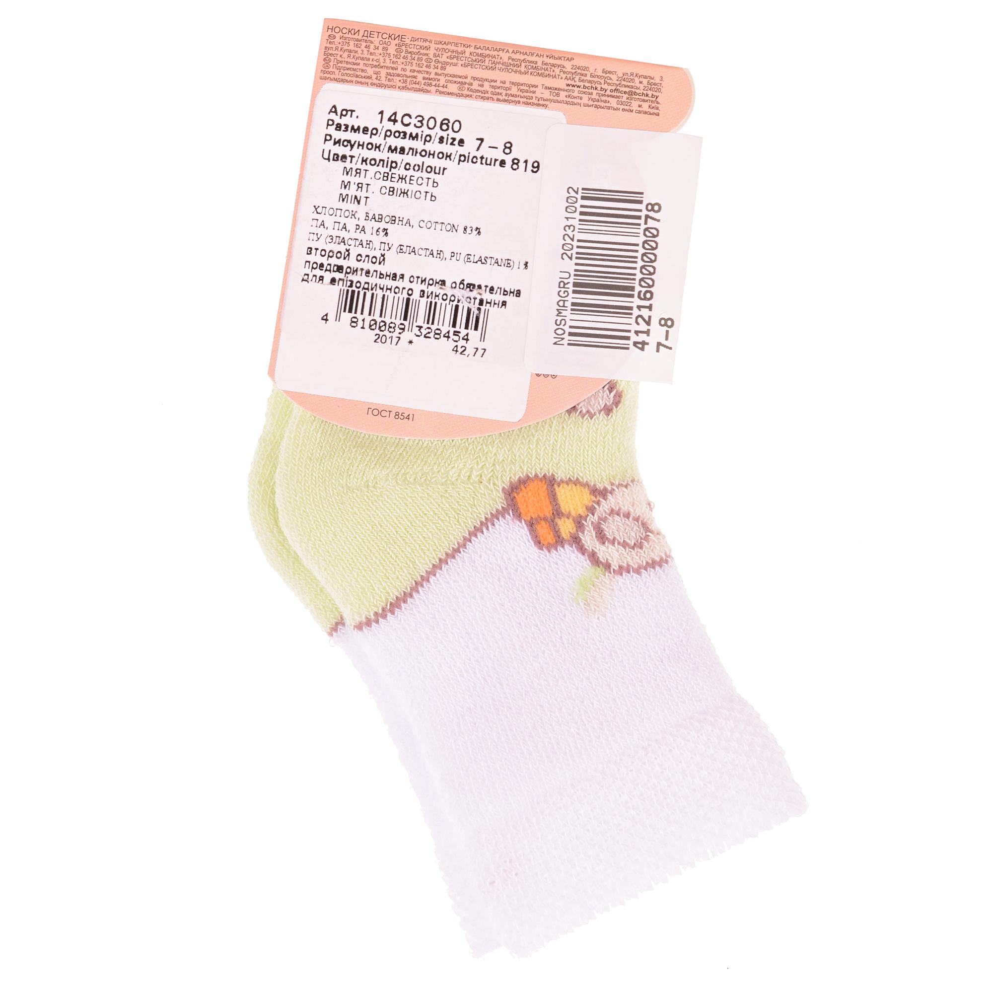 Межсезонные или зимние укороченные детские носки, цвет салатовый, теплые, состав: 83% хлопок, 16% полиамид, 1% эластан, фабричный артикул 14С3060. Производитель «Брестский чулочный комбинат ОАО, Беларусь» под брендом «Брестские (бчк)».