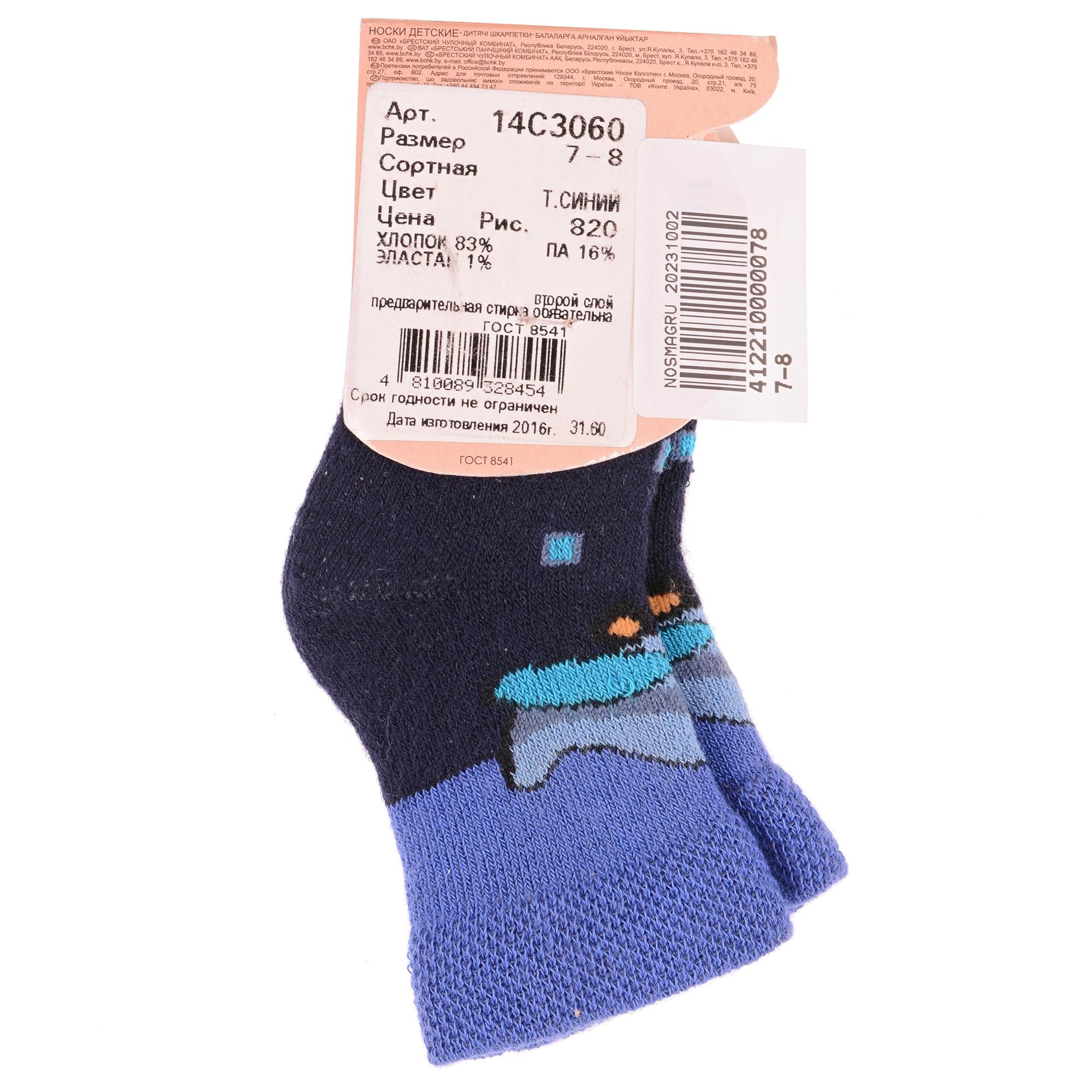 Межсезонные или зимние укороченные детские носки, цвет темно-синий, теплые, состав: 83% хлопок, 16% полиамид, 1% эластан, фабричный артикул 14С3060. Производитель «Брестский чулочный комбинат ОАО, Беларусь» под брендом «Брестские (бчк)».