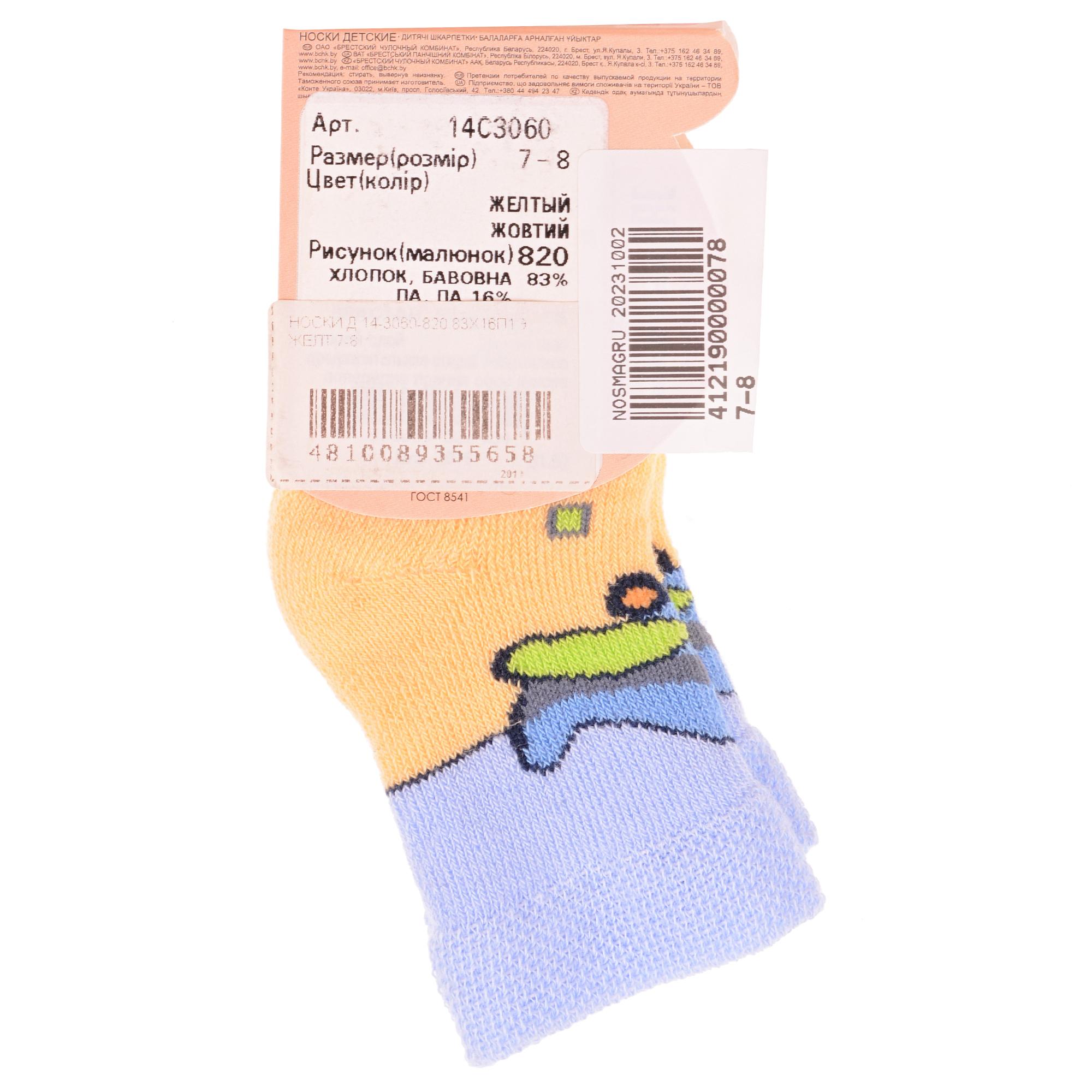 Межсезонные или зимние укороченные детские носки, цвет желтый, теплые, состав: 83% хлопок, 16% полиамид, 1% эластан, фабричный артикул 14С3060. Производитель «Брестский чулочный комбинат ОАО, Беларусь» под брендом «Брестские (бчк)».