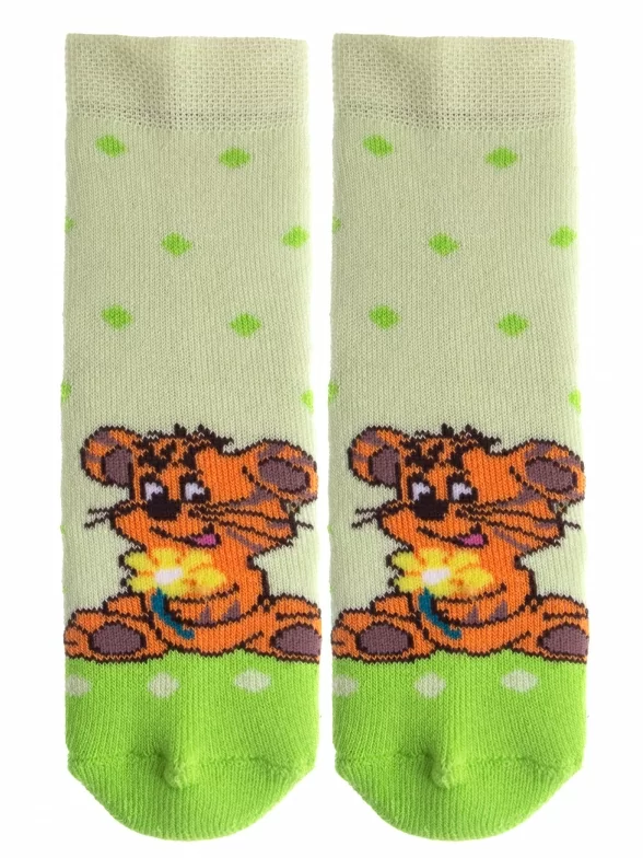 Межсезонные или зимние укороченные детские носки, цвет салатовый, теплые, состав: 83% хлопок, 16% ПА, 1% эластан, фабричный артикул 14С3060. Производитель «Брестский чулочный комбинат ОАО, Беларусь» под брендом «Брестские (бчк)».