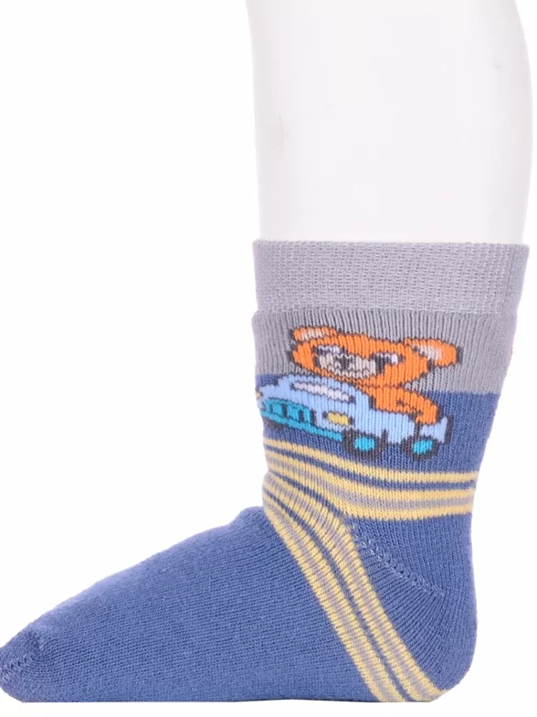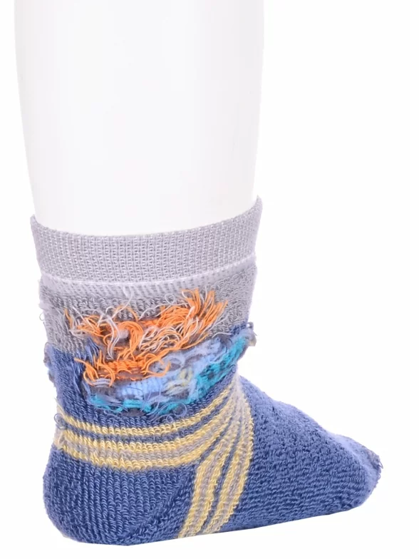 Зимние или межсезонные укороченные детские носки, цвет джинс, прикольные, состав: 83% хлопок, 16% полиамид, 1% эластан, фабричный артикул 14С3060. Производитель «Брестский чулочный комбинат ОАО, Беларусь» под брендом «Брестские (бчк)».