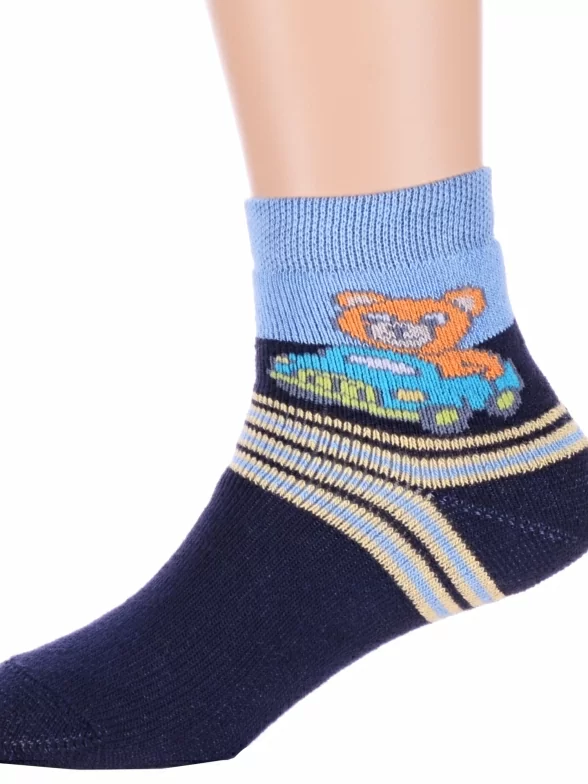 Зимние или межсезонные укороченные детские носки, цвет темно-синий, прикольные, состав: 83% хлопок, 16% полиамид, 1% эластан, фабричный артикул 14С3060. Производитель «Брестский чулочный комбинат ОАО, Беларусь» под брендом «Брестские (бчк)».