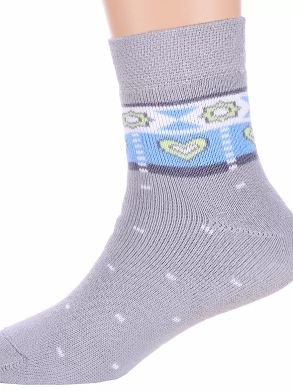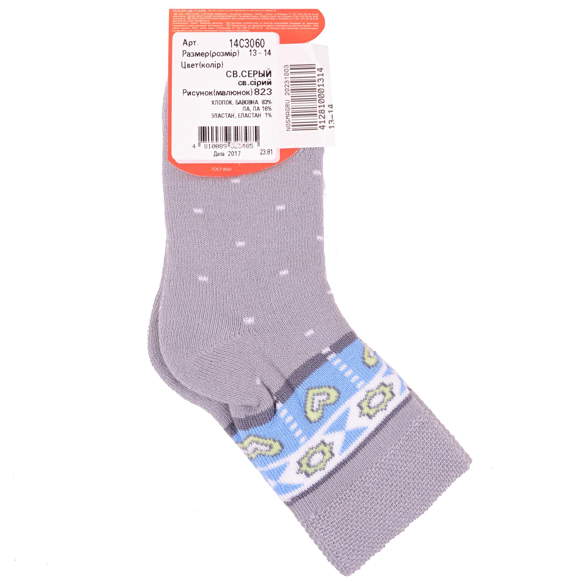 Зимние или межсезонные укороченные детские носки, цвет светло-серый, прикольные, состав: 83% хлопок, 16% полиамид, 1% эластан, фабричный артикул 14С3060. Производитель «Брестский чулочный комбинат ОАО, Беларусь» под брендом «Брестские (бчк)».