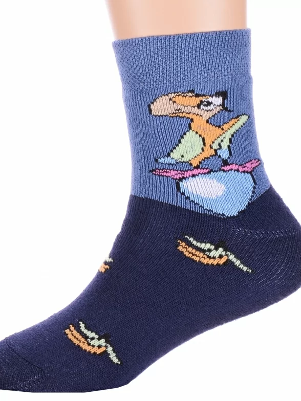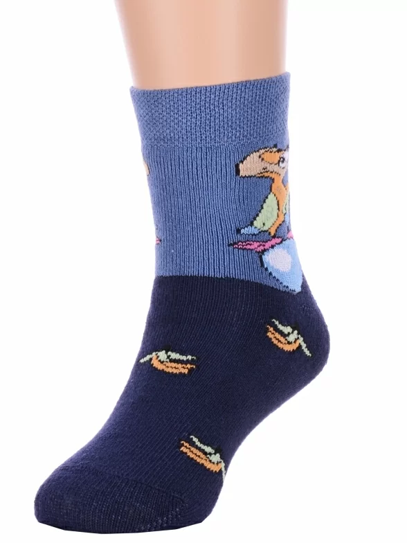 Зимние или межсезонные укороченные детские носки, цвет темно-синий, прикольные, состав: 83% хлопок, 16% полиамид, 1% эластан, фабричный артикул 14С3060. Производитель «Брестский чулочный комбинат ОАО, Беларусь» под брендом «Брестские (бчк)».