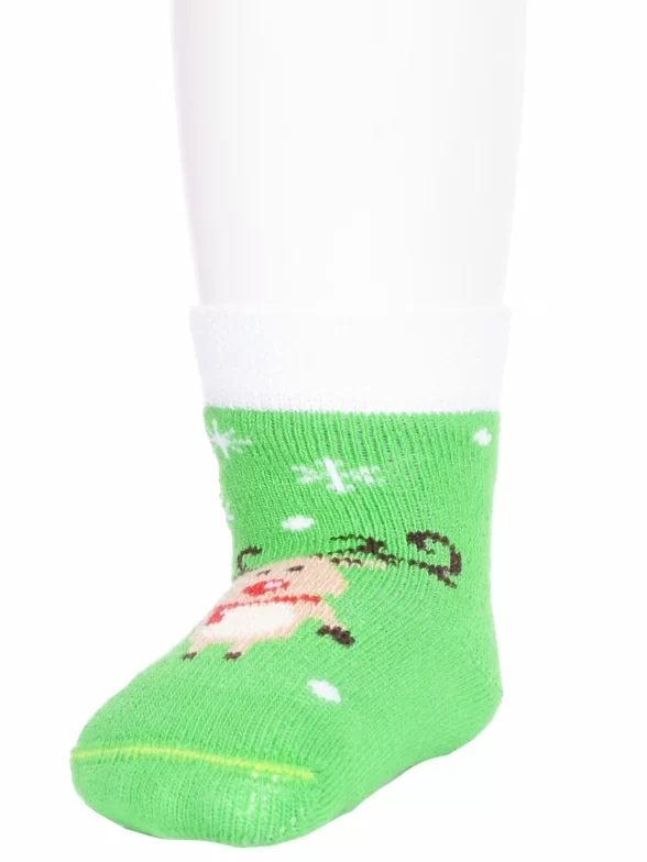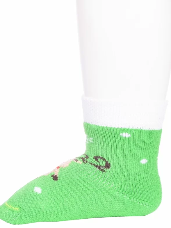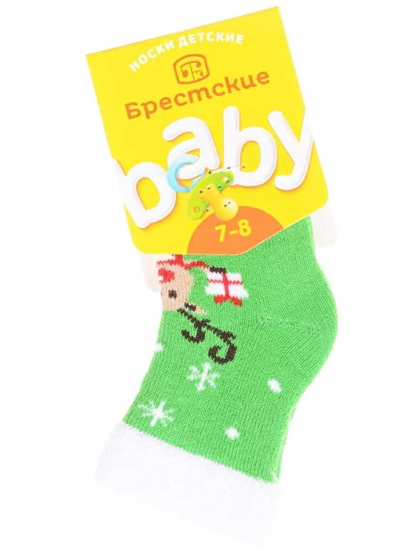 Зимние или межсезонные укороченные детские носки, цвет зеленый, прикольные, состав: 83% хлопок, 16% полиамид, 1% эластан, фабричный артикул 14С3060. Производитель «Брестский чулочный комбинат ОАО, Беларусь» под брендом «Брестские (бчк)».