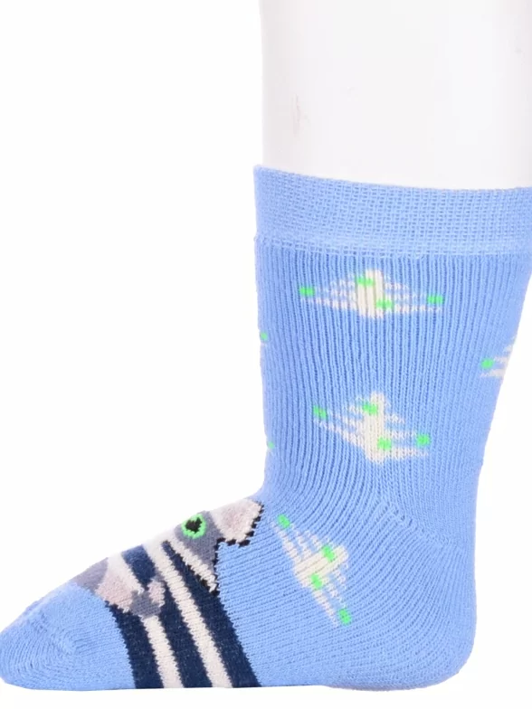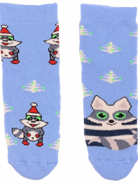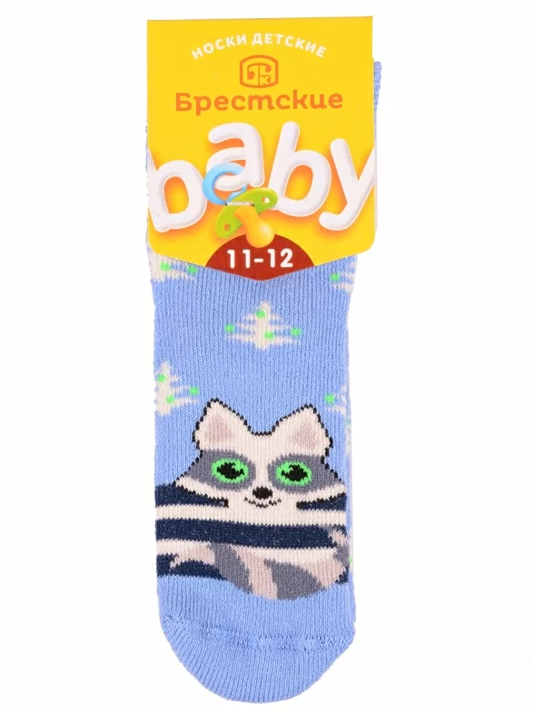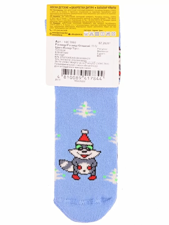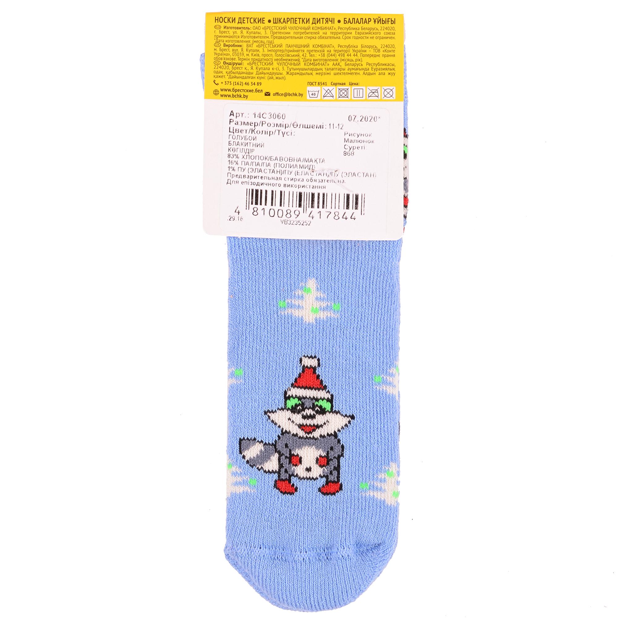 Зимние или межсезонные укороченные детские носки, цвет голубой, прикольные, состав: 83% хлопок, 16% полиамид, 1% эластан, фабричный артикул 14С3060. Производитель «Брестский чулочный комбинат ОАО, Беларусь» под брендом «Брестские (бчк)».