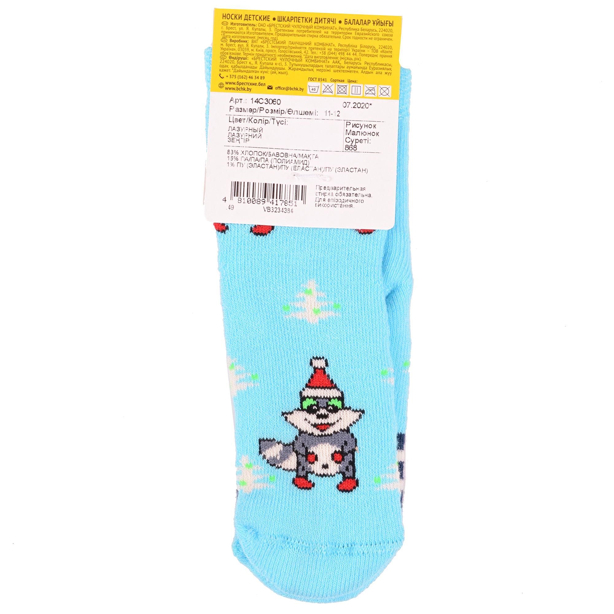 Зимние или межсезонные укороченные детские носки, цвет бирюзовый, прикольные, состав: 83% хлопок, 16% полиамид, 1% эластан, фабричный артикул 14С3060. Производитель «Брестский чулочный комбинат ОАО, Беларусь» под брендом «Брестские (бчк)».