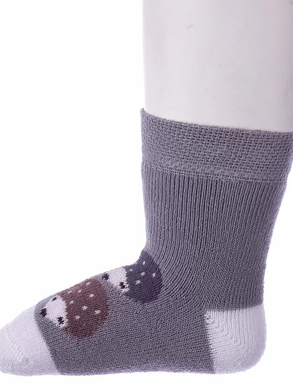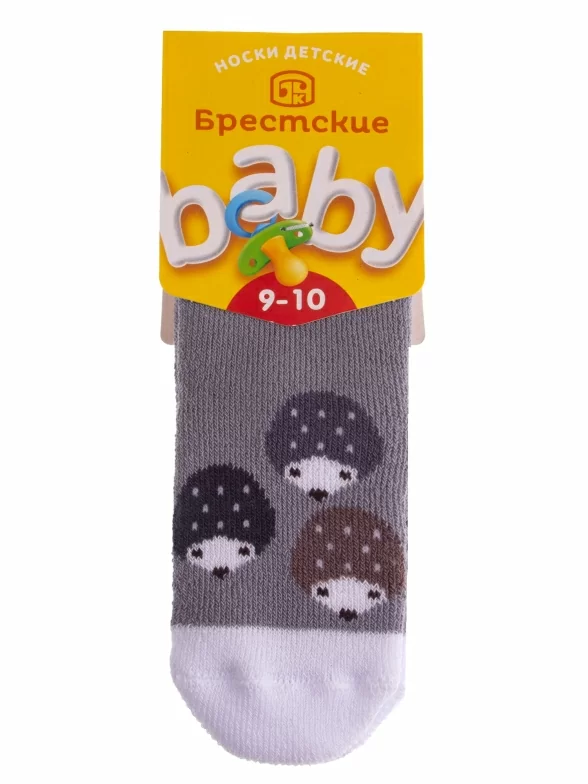 Межсезонные или зимние укороченные детские носки, цвет серый, теплые, состав: 83% хлопок, 16% ПА, 1% эластан, фабричный артикул 14С3060. Производитель «Брестский чулочный комбинат ОАО, Беларусь» под брендом «Брестские (бчк)».
