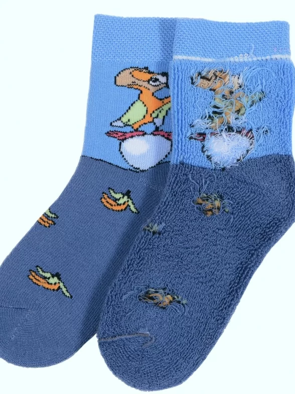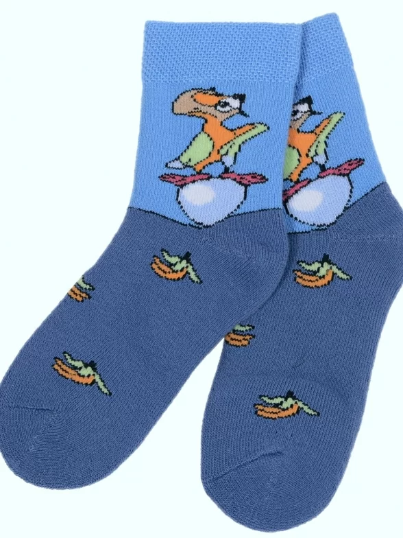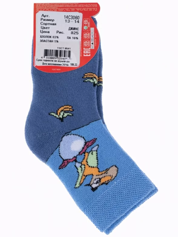 Зимние укороченные детские носки, цвет джинс, теплые, махровые, повседневные, шов обычный (не бесшовные), принт (рисунок): надписи, с узором, состав: 83% хлопок, 16% полиамид, 1% эластан, арт. 14С3060. Производитель «Брестский чулочный комбинат ОАО, Беларусь» под брендом «Брестские (бчк)».
