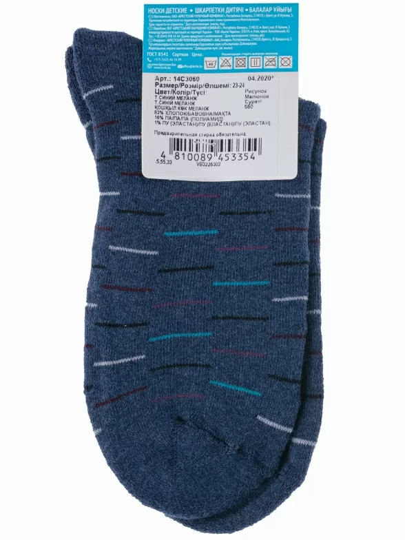 Зимние укороченные детские носки, цвет темно-синий, теплые, махровые, повседневные, шов обычный (не бесшовные), принт (рисунок): животные, с узором, состав: 83% хлопок, 16% полиамид, 1% эластан, арт. 14С3060. Производитель «Брестский чулочный комбинат ОАО, Беларусь» под брендом «Брестские (бчк)».