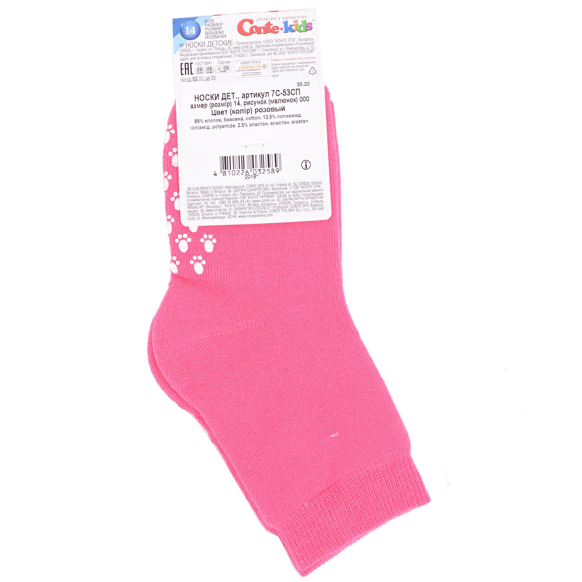 Межсезонные или зимние укороченные детские носки, цвет розовый, теплые, состав: 85% хлопок, 12.5% полиамид, 2.5% эластан, фабричный артикул 7С-53СП. Производитель «Conte, Беларусь» под брендом «Conte».