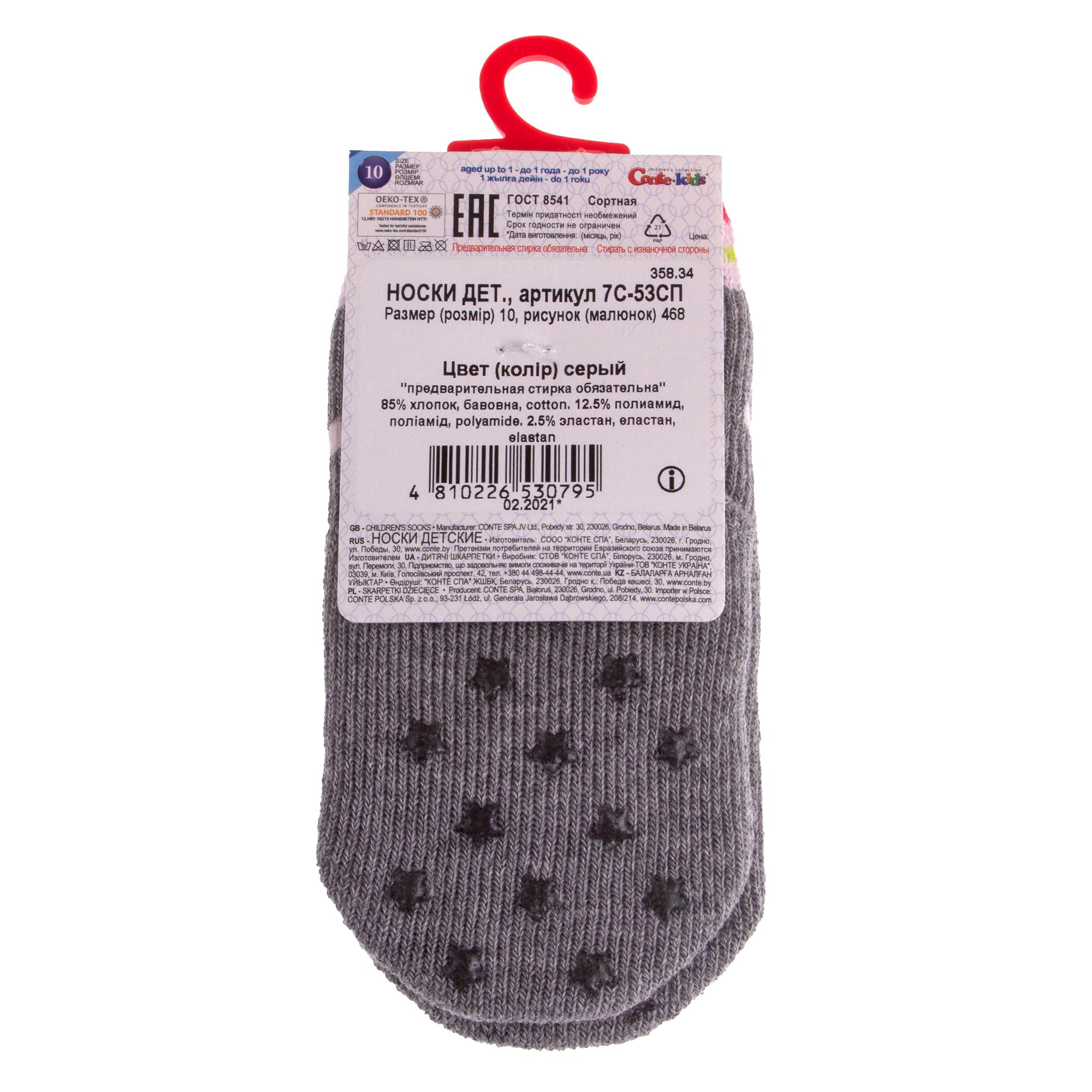 Межсезонные или зимние укороченные детские носки, цвет серый, теплые, состав: 85% хлопок, 12.5% полиамид, 2.5% эластан, фабричный артикул 7С-53СП. Производитель «Conte, Беларусь» под брендом «Conte».