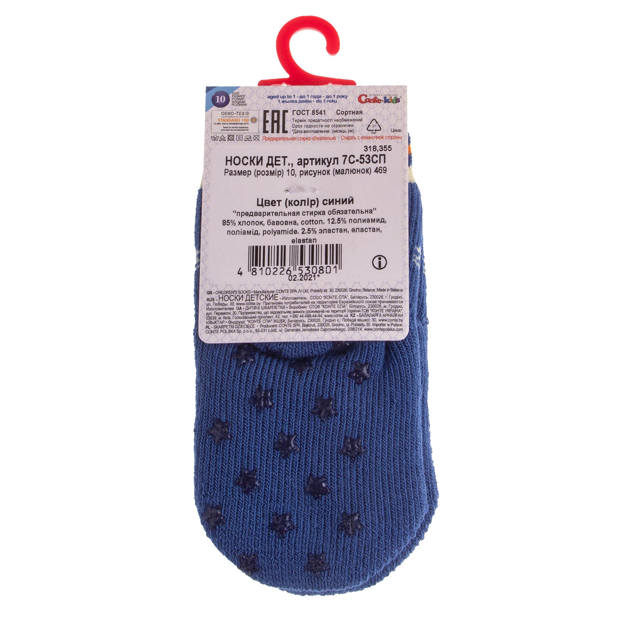 Межсезонные или зимние укороченные детские носки, цвет синий, теплые, состав: 85% хлопок, 12.5% полиамид, 2.5% эластан, фабричный артикул 7С-53СП. Производитель «Conte, Беларусь» под брендом «Conte».