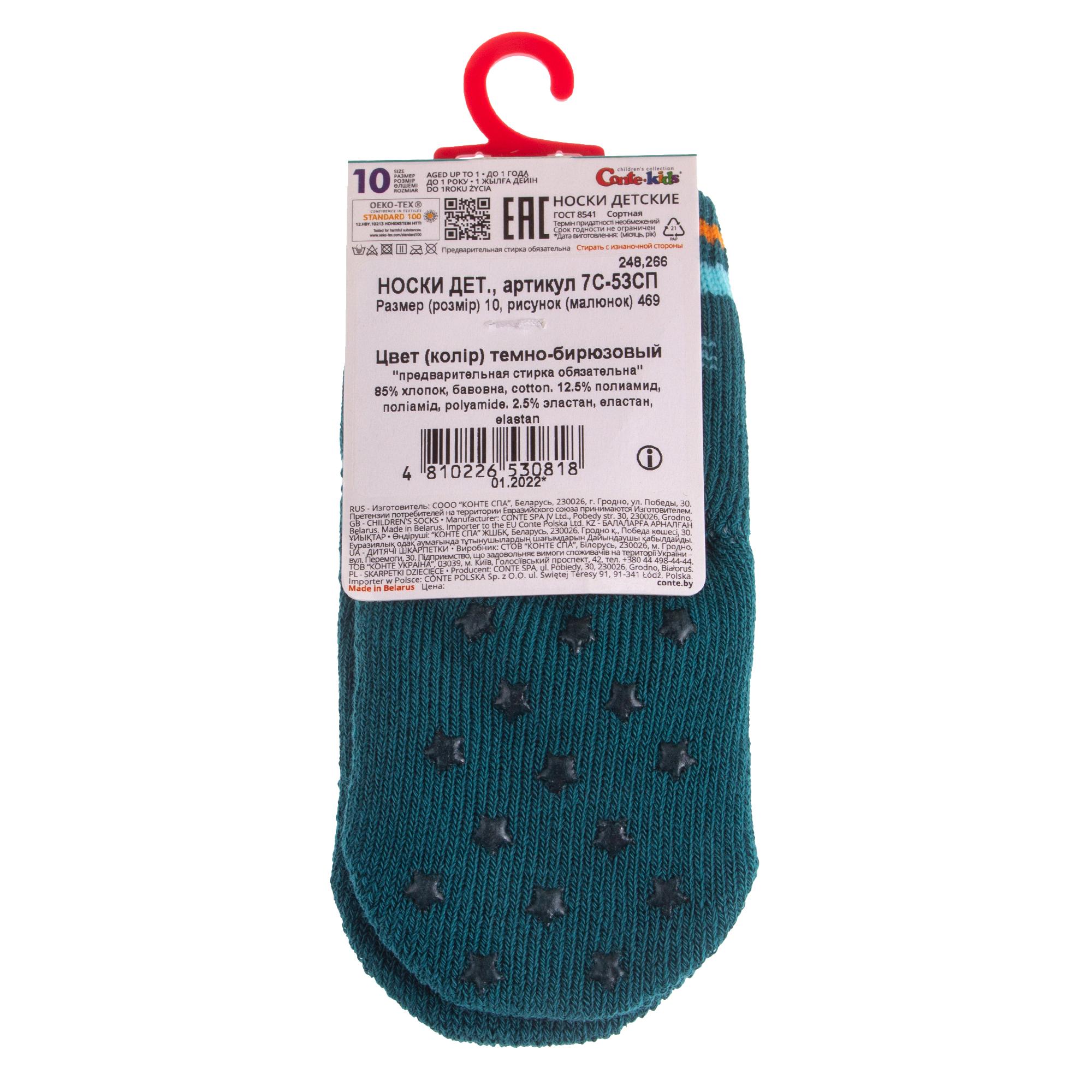 Межсезонные или зимние укороченные детские носки, цвет бирюзовый, теплые, состав: 85% хлопок, 12.5% полиамид, 2.5% эластан, фабричный артикул 7С-53СП. Производитель «Conte, Беларусь» под брендом «Conte».