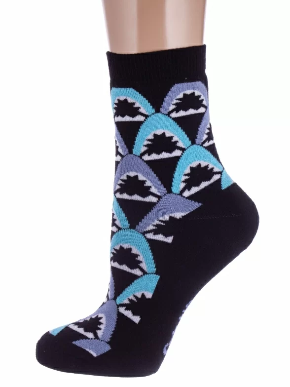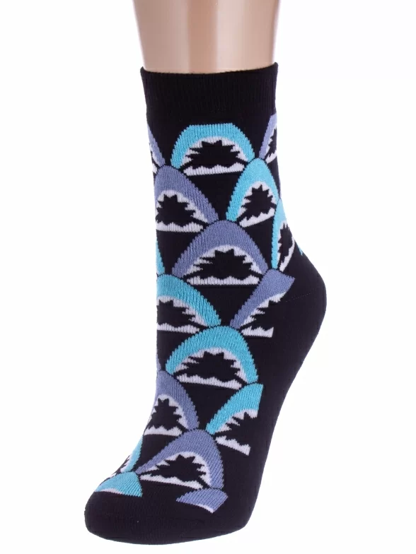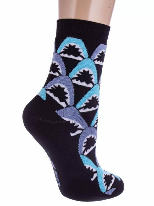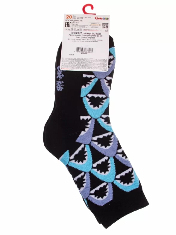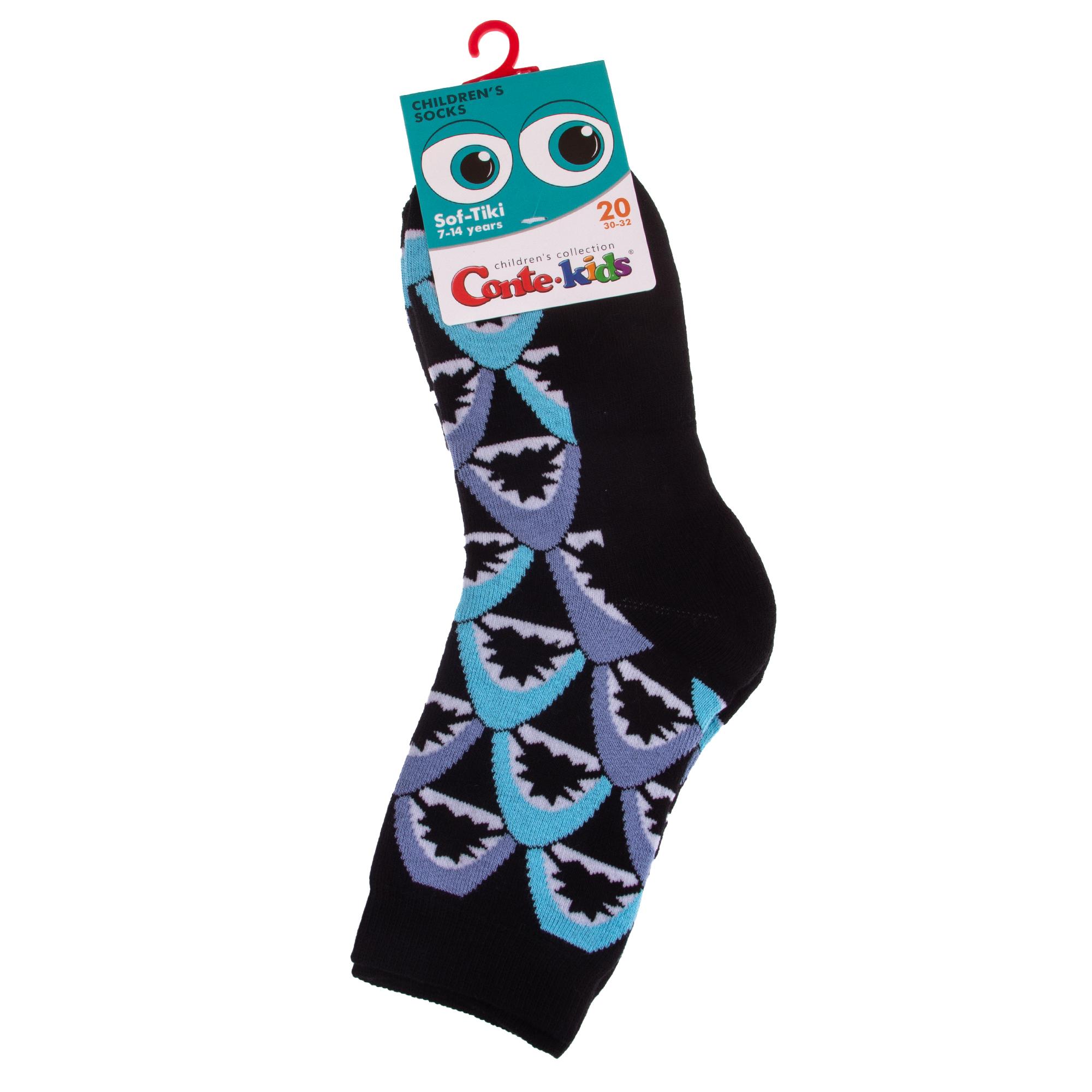 Межсезонные или зимние укороченные детские носки, цвет бирюзовый-черный, теплые, состав: 80% хлопок, 19% полиамид, 1% эластан, фабричный артикул 21С-13СП. Производитель «Conte, Беларусь» под брендом «Conte».