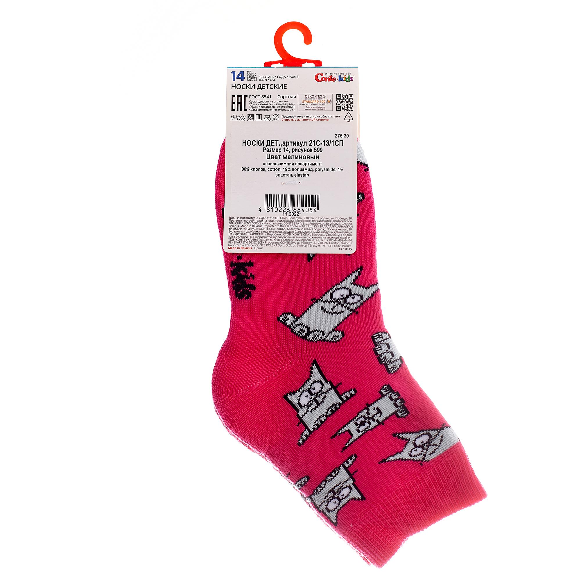 Межсезонные или зимние укороченные детские носки, цвет фуксия, теплые, состав: 80% хлопок, 19% полиамид, 1% эластан, фабричный артикул 21С-13/1СП. Производитель «Conte, Беларусь» под брендом «Conte».